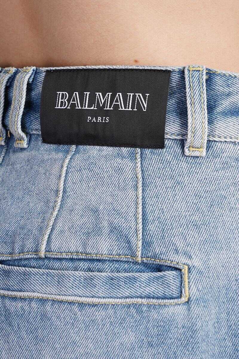 Jeans in blue cotton, zip and button closure, waist belt loops, side button , pence, welt pockets, back patch logo, wide leg, 100% cotton, Made in Italy