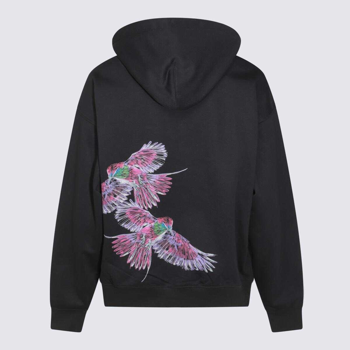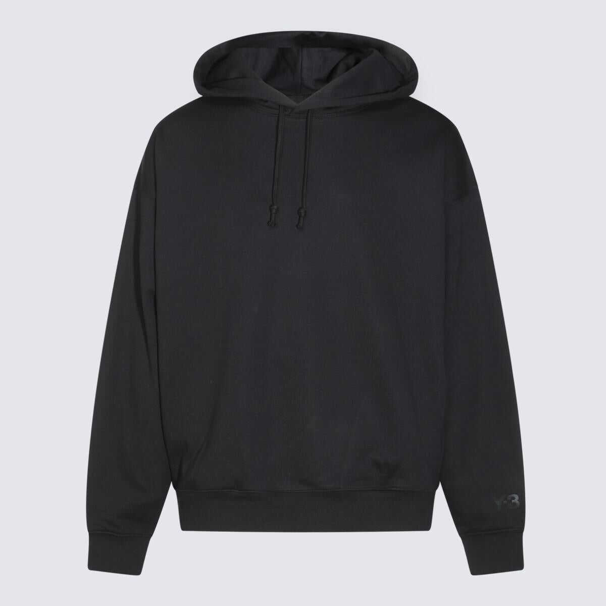 Black cotton blend sweatshirt from Adidas Y-3 featuring drawstring hood, long sleeves, rear print, ribbed hem and ribbed cuffs.