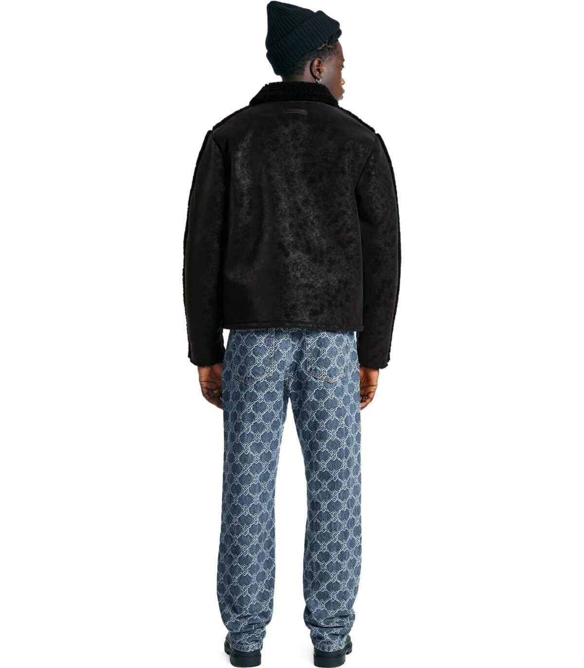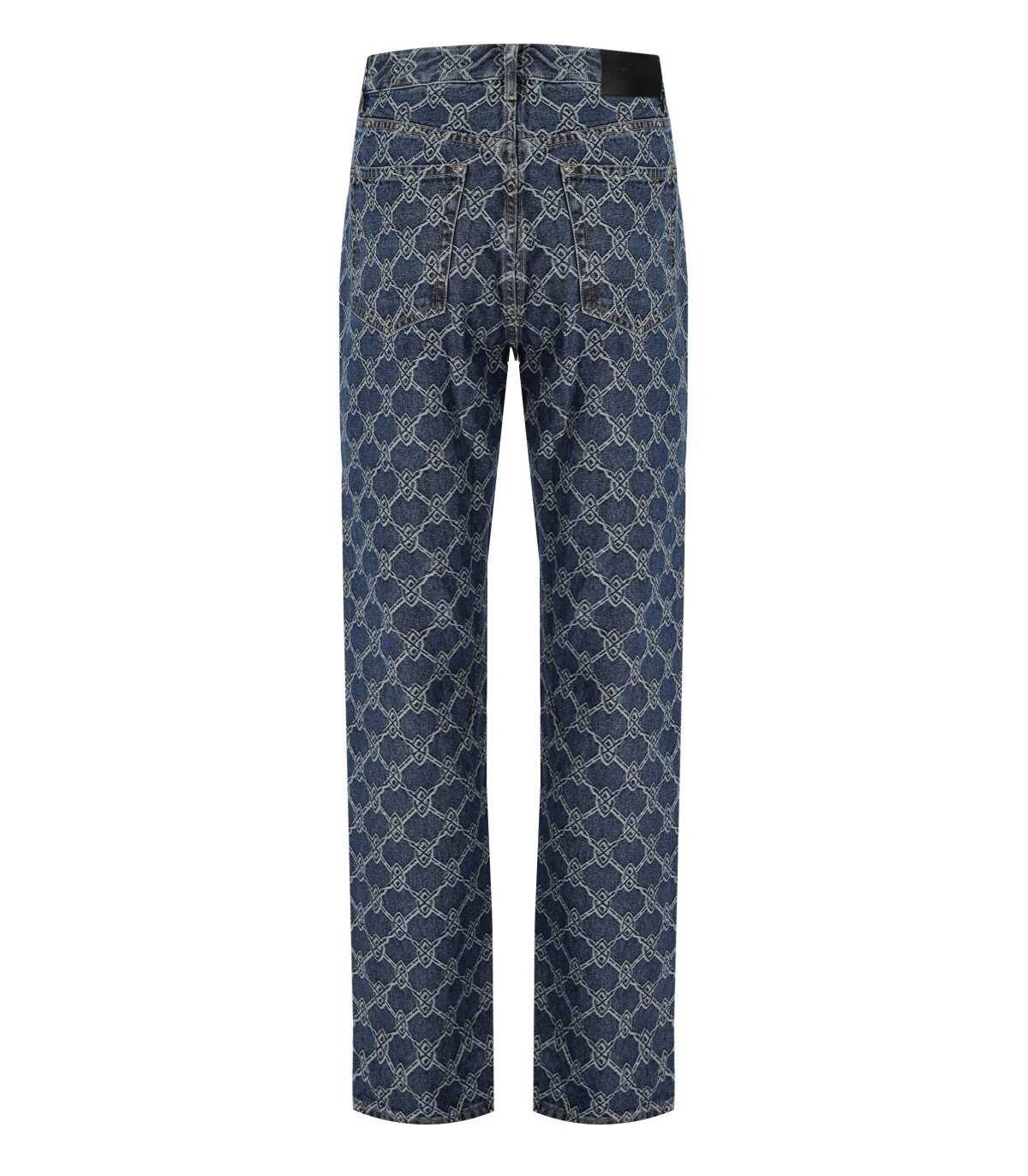 Rahul jeans by Daily Paper made of medium blue cotton denim, decorated with an all-over logo pattern. Five-pocket design, zip and button closure. Straight fit.