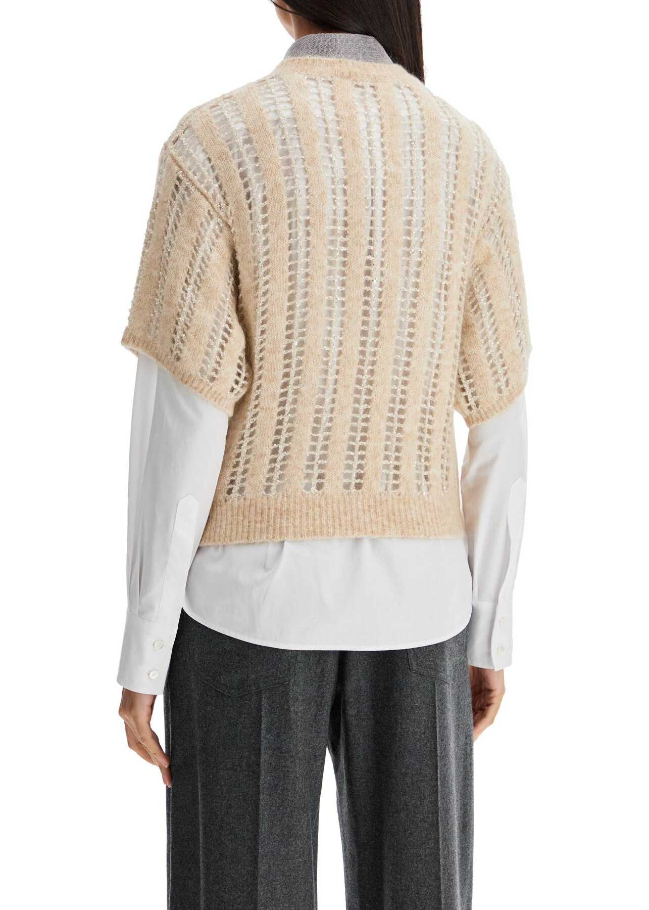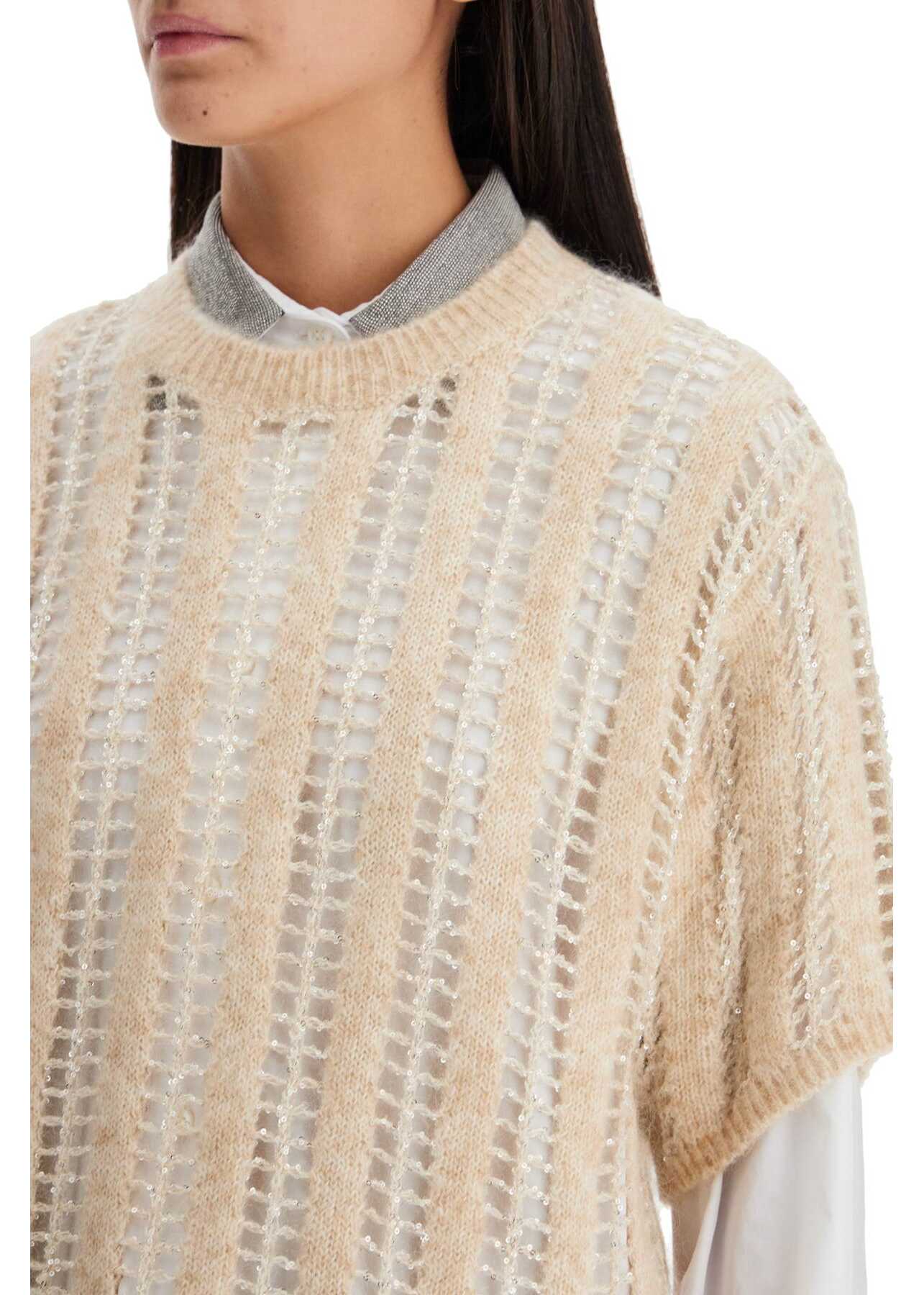 Spun from a soft wool and mohair blend, this short-sleeved knit top is embellished with a sequined net pattern. It comes in a relaxed fit with a round neckline and ribbed trims. The model is 177 cm tall and wears size XS.