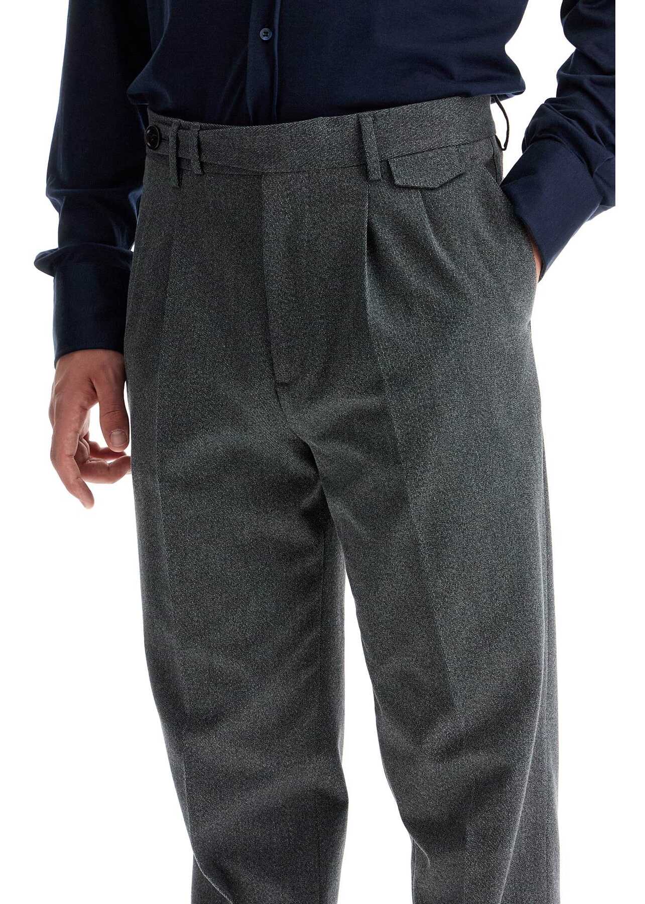Brunello Cucinelli tailored trousers featuring a soft cut on the hips and a slimmer fit on the leg. Made from stretch cotton twill, they have a four-pocket design with belt loops, double pleats, and waistband adjusters. Zip and button closure. The model is 182 cm tall and wears size IT 48.