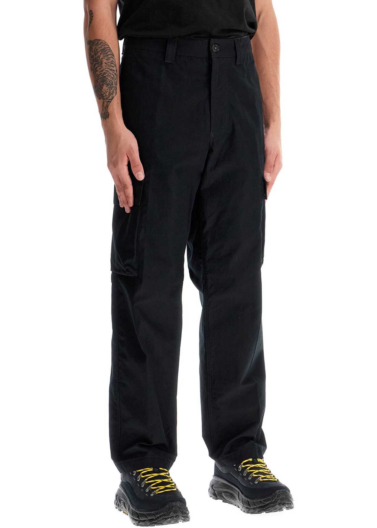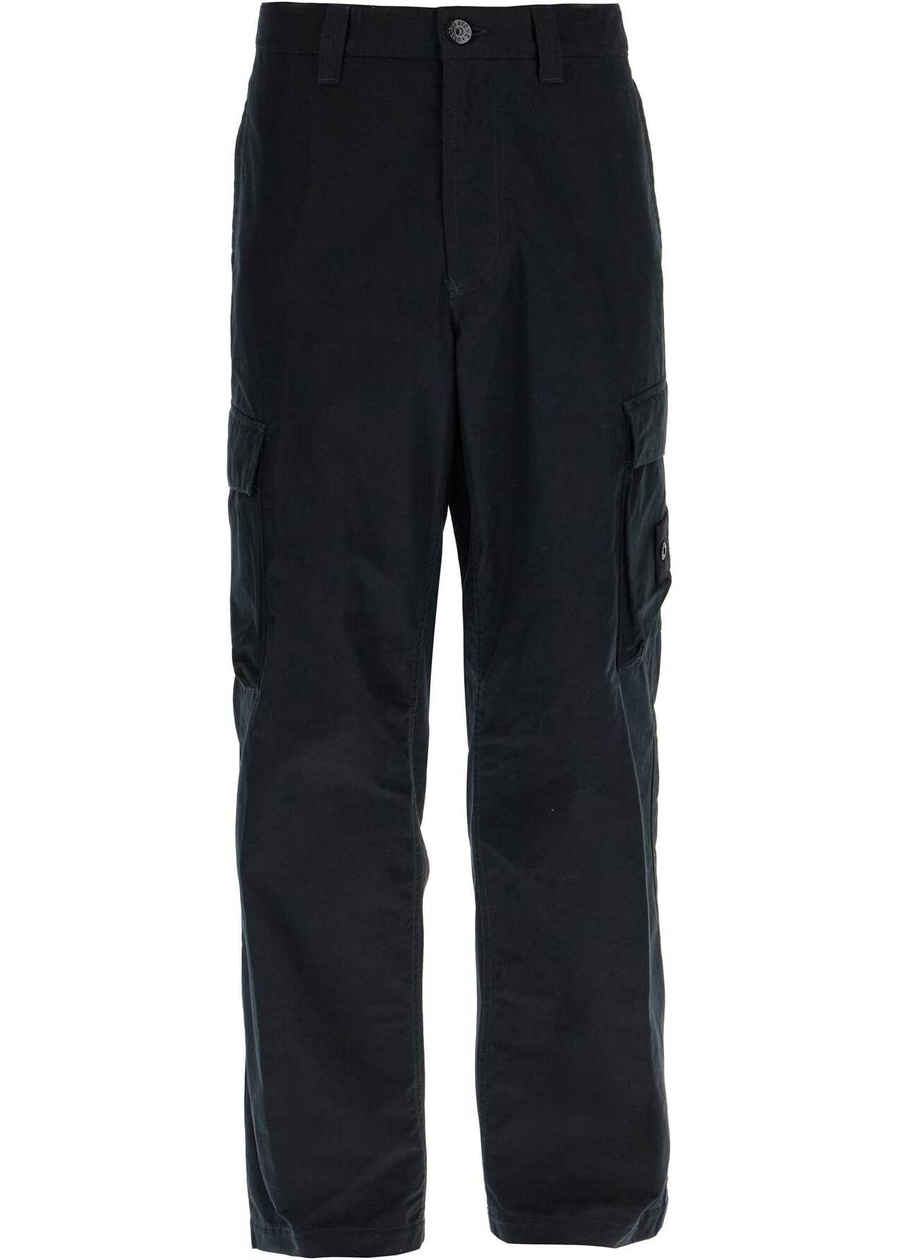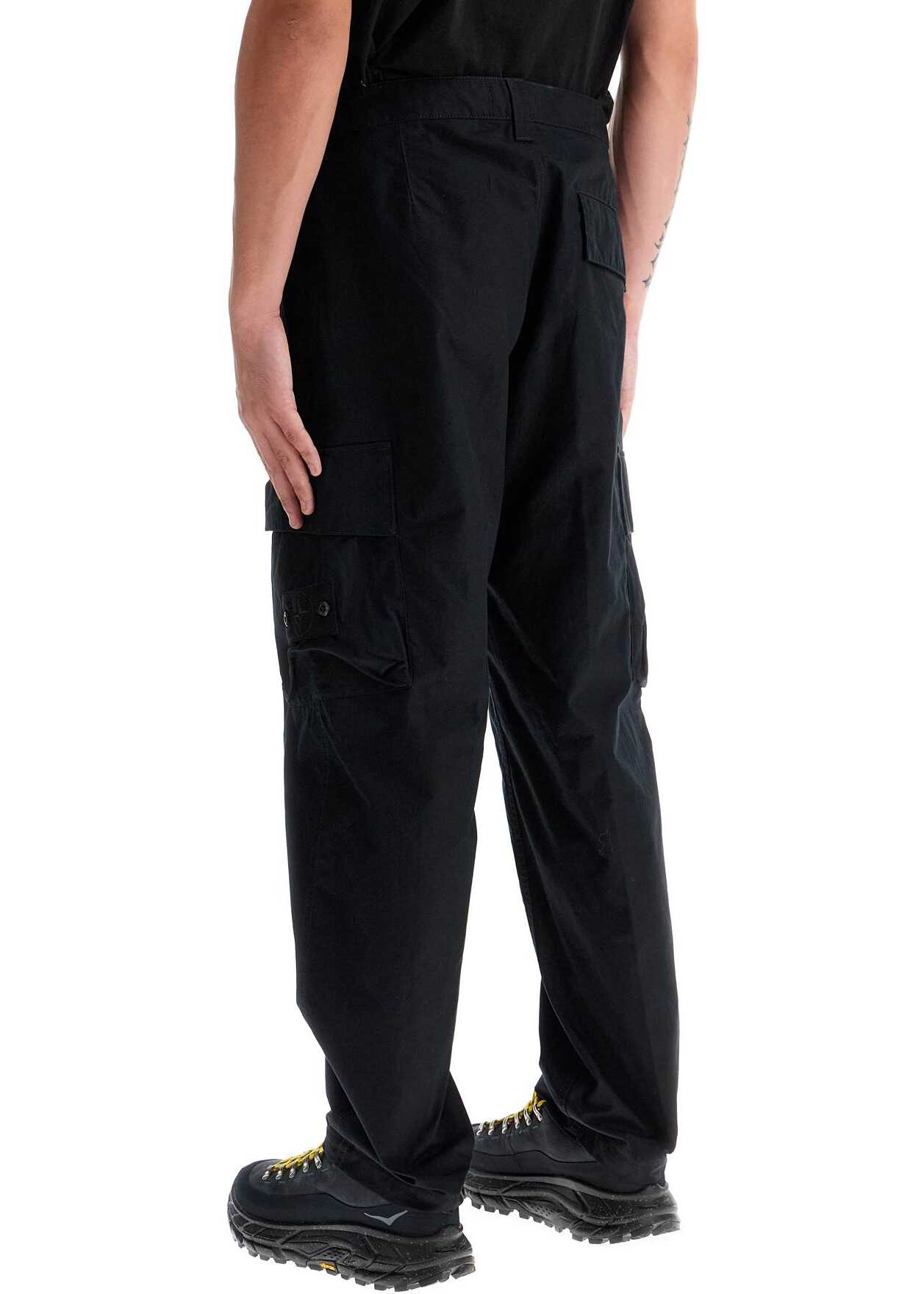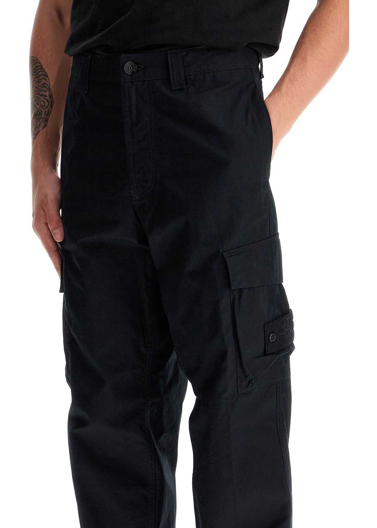 Stone Island cargo pants made of lightweight pure cotton fabric with a regular fit. Enriched by flap pockets on the legs and the iconic monochromatic Ghost series logo badge, they feature two side pockets, one back pocket with flap, belt loops, and zip and button closure. The model is 182 cm tall and wears size 31.