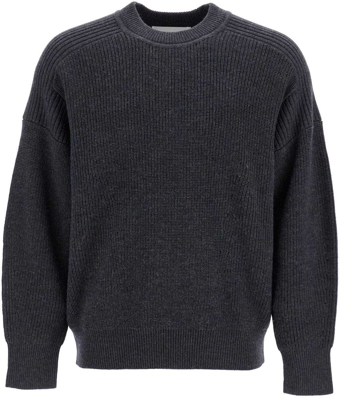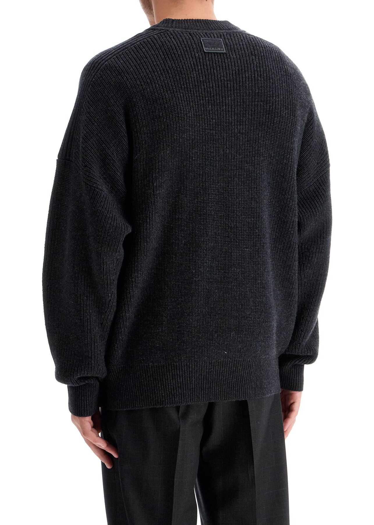This Marant crew neck pullover is made of soft merino wool with an oversized fit, dropped shoulders, and flat ribbed details. The model is 182 cm tall and wears a size L.