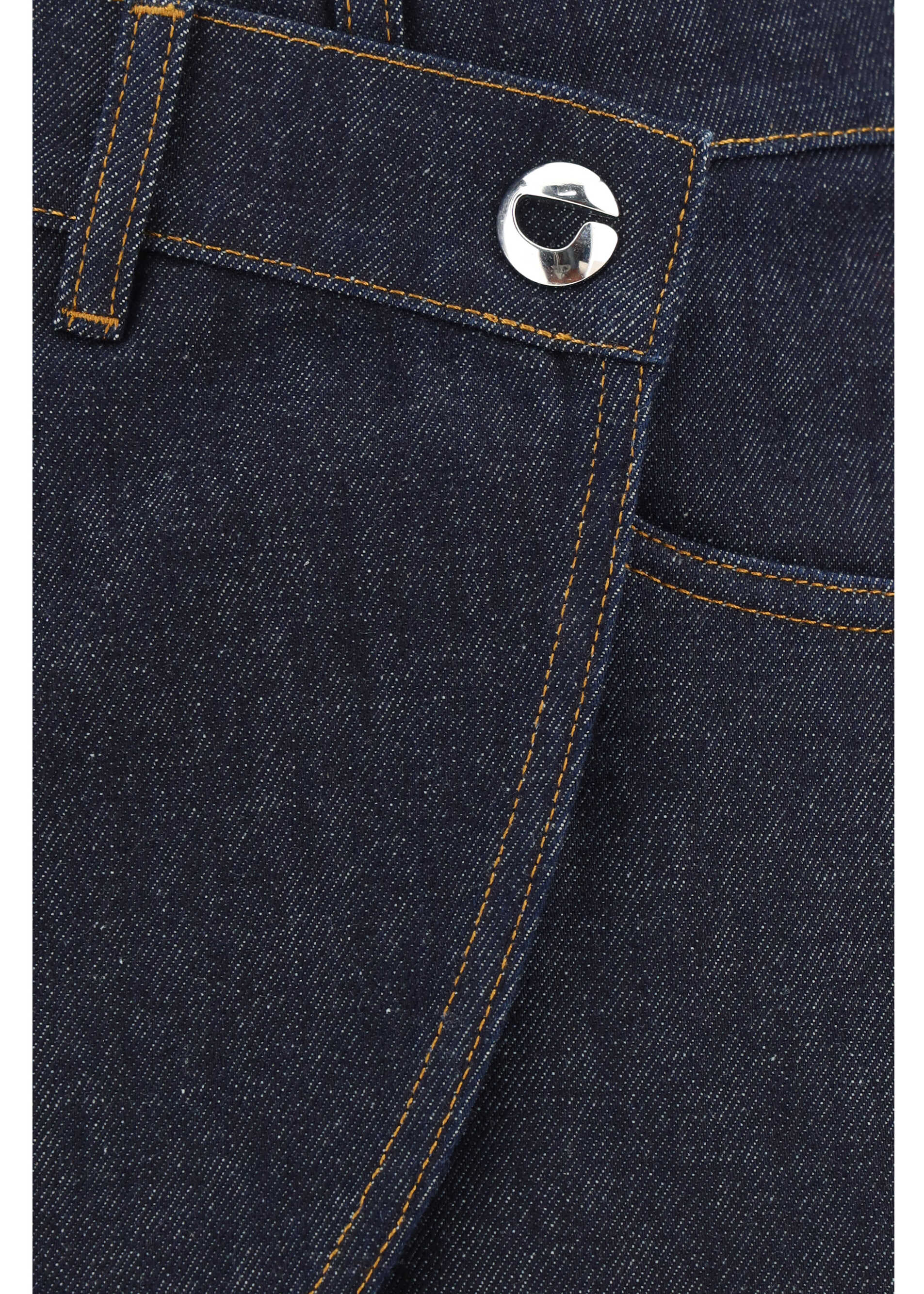 Cotton Denim Mini Skirt by Coperni, asymmetrical wrap-around button closure, five-pocket design, regular fit.