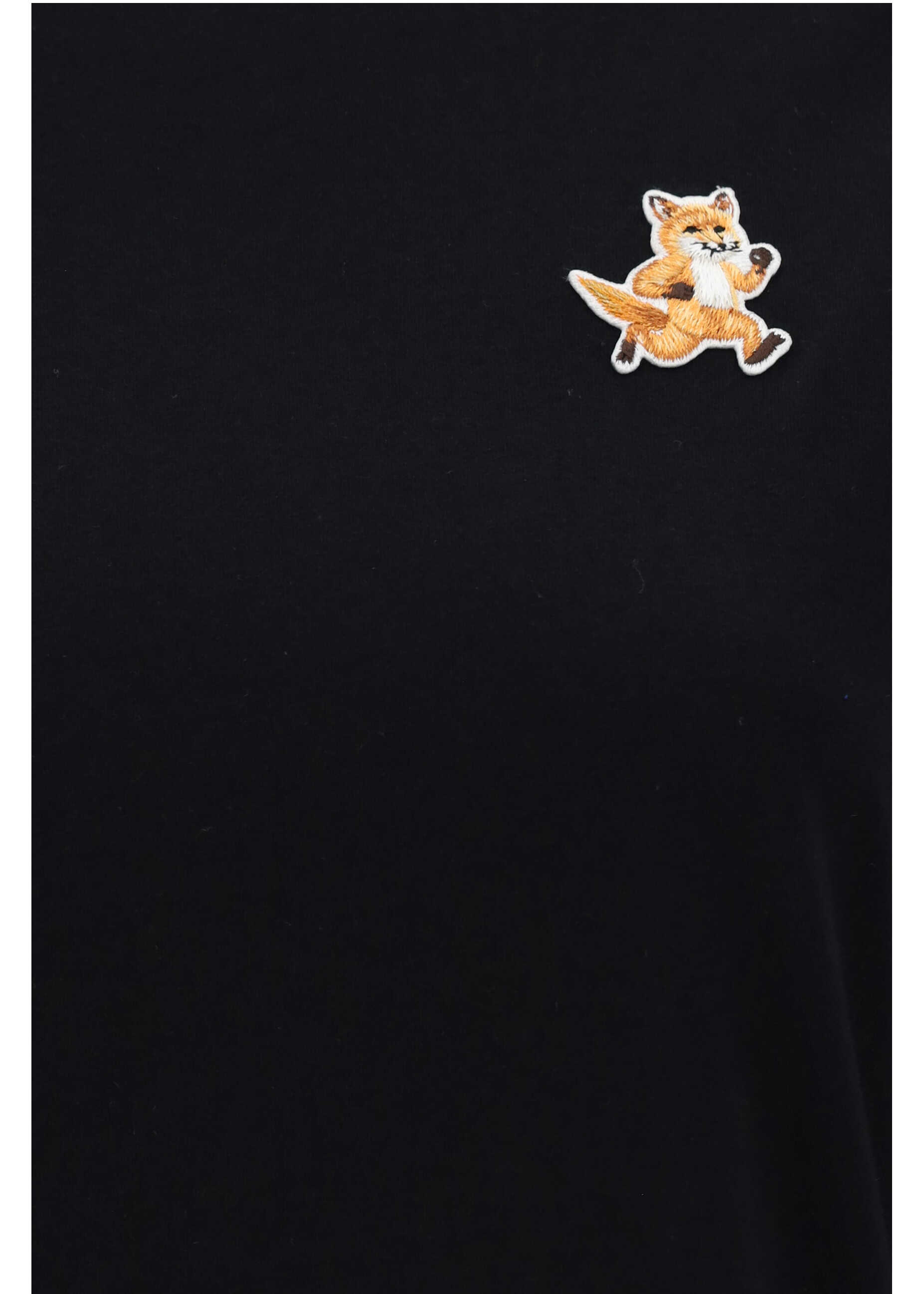 Cotton T-Shirt by Maison Kitsuné, ribbed crew neck, iconic brand logo embroidered on front, monochrome pattern, regular fit.