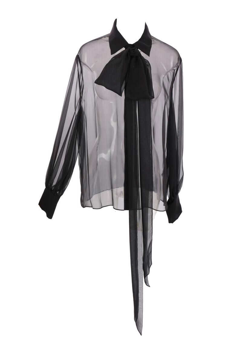 Valentino Garavani's shirt crafted in black silk chiffon with removable scarf detail. It features classic collar, hidden button closure, long puff sleeves with buttoned cuffs and straight hem.
