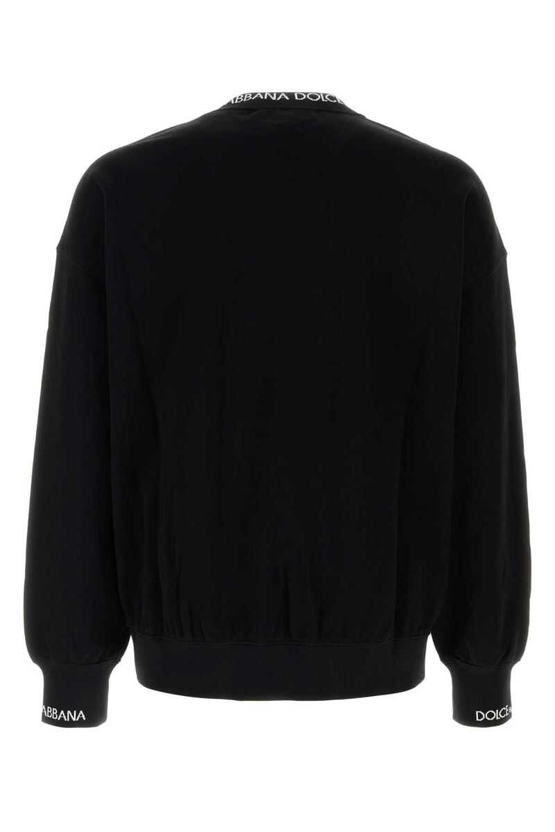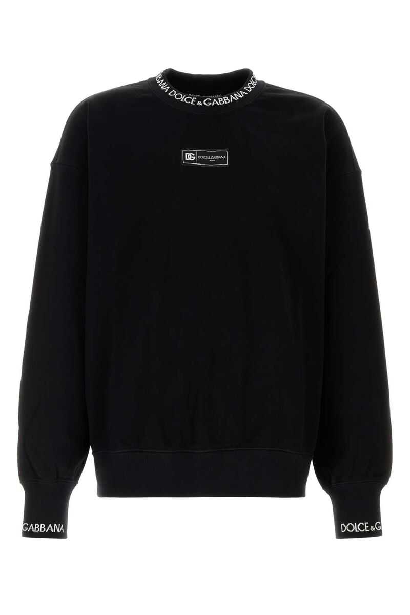 black cotton blend logo print to the front and neckline embroidered logo at the sleeve crew neck long sleeves straight hem