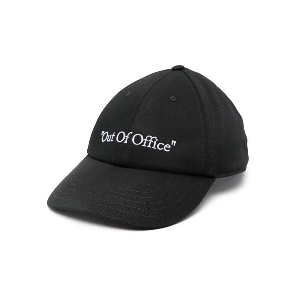 Black/white cotton twill weave curved peak six-panel construction embroidered motif eyelet vents adjustable strap to the rear unlined