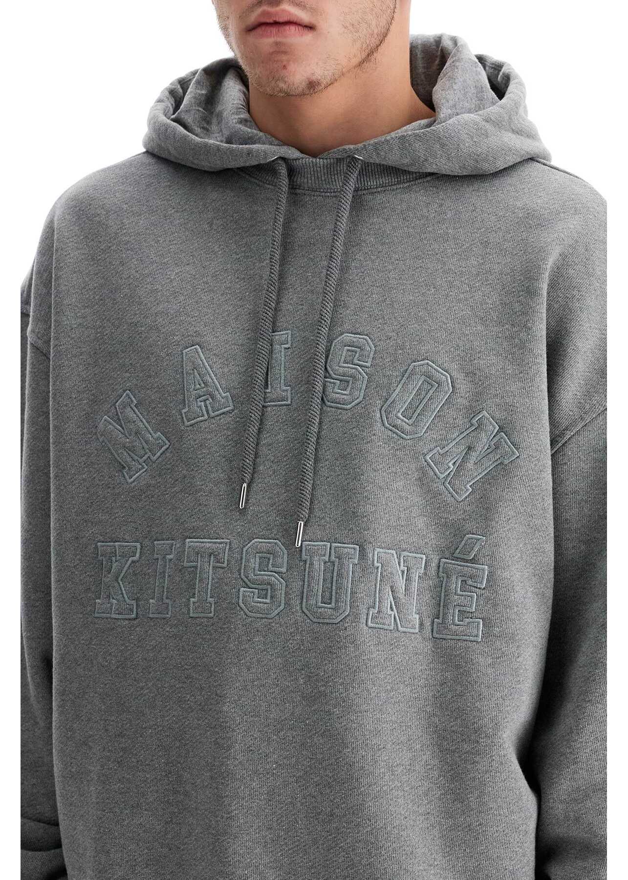 This Maison Kitsuné hoodie is made of brushed cotton jersey and features an embroidered varsity-style logo on the front. The neckline, cuffs, and hem are ribbed for a comfortable fit, while the oversized silhouette adds a trendy touch. The model is 182 cm tall and wears a size L.