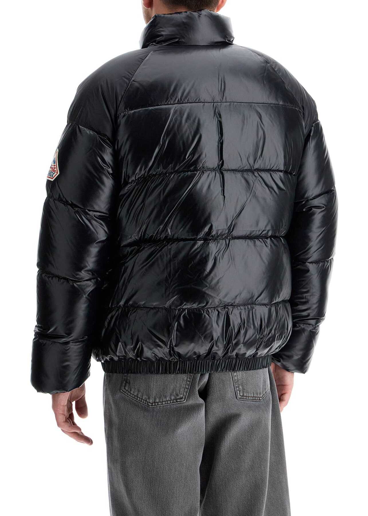 The Vintage Mythic unisex short down jacket by Pyrenex is made of shiny recycled and water-repellent nylon taffeta, paired with matte finish raglan shoulders and filled with 90/10 duck down and feathers. The bomber-style design features a high collar, zip closure and front pockets, elasticized cuffs and hem, and is finished with an inner pocket. The model is 182 cm tall and wears size L.