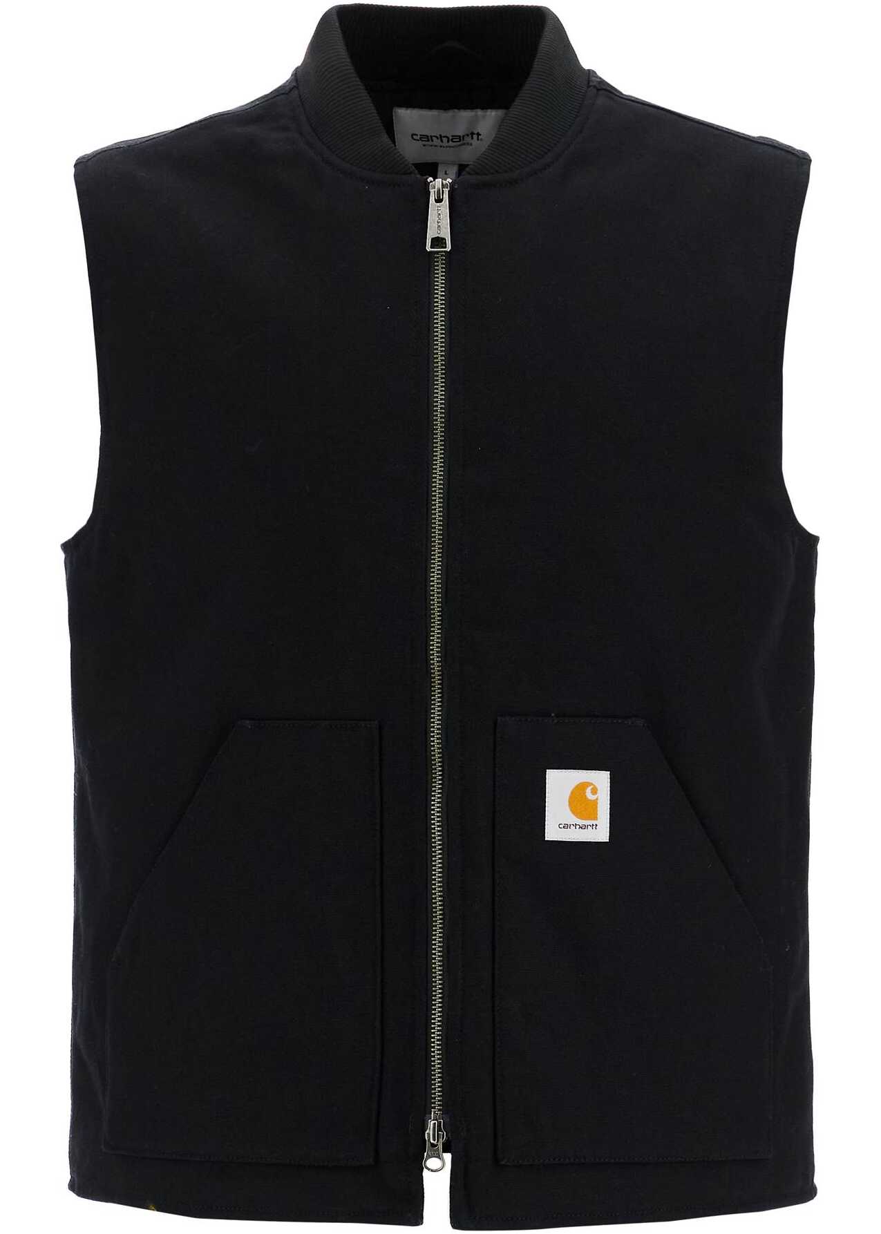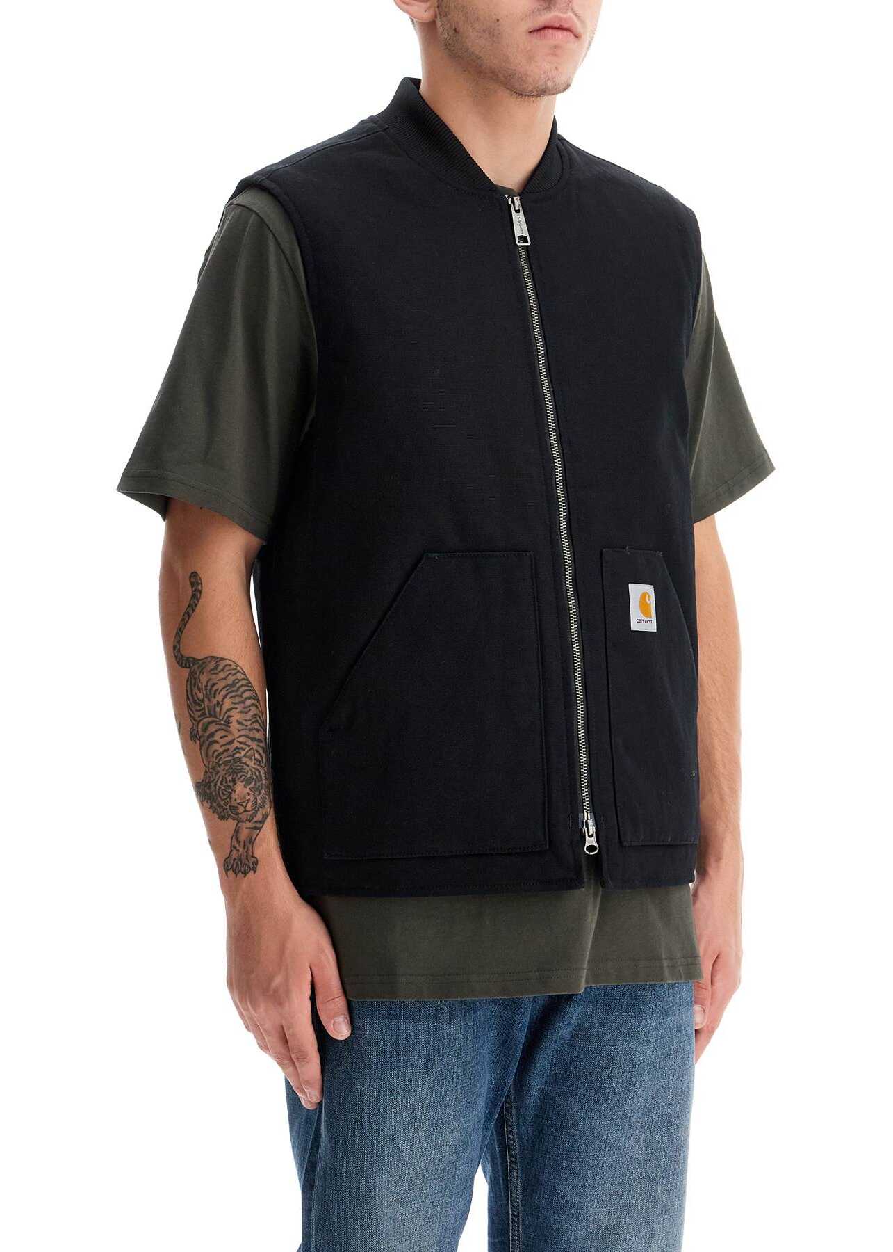 The Carhartt WIP Dearborn Canvas Vest is made of organic cotton and features a light synthetic 3M Thinsulate padding. It has a two-way zip closure, ribbed bomber-style collar, two front pockets, and the iconic square logo label. The nylon quilted lining includes an inner pocket. Regular fit. Model is 182 cm tall and wears size L.