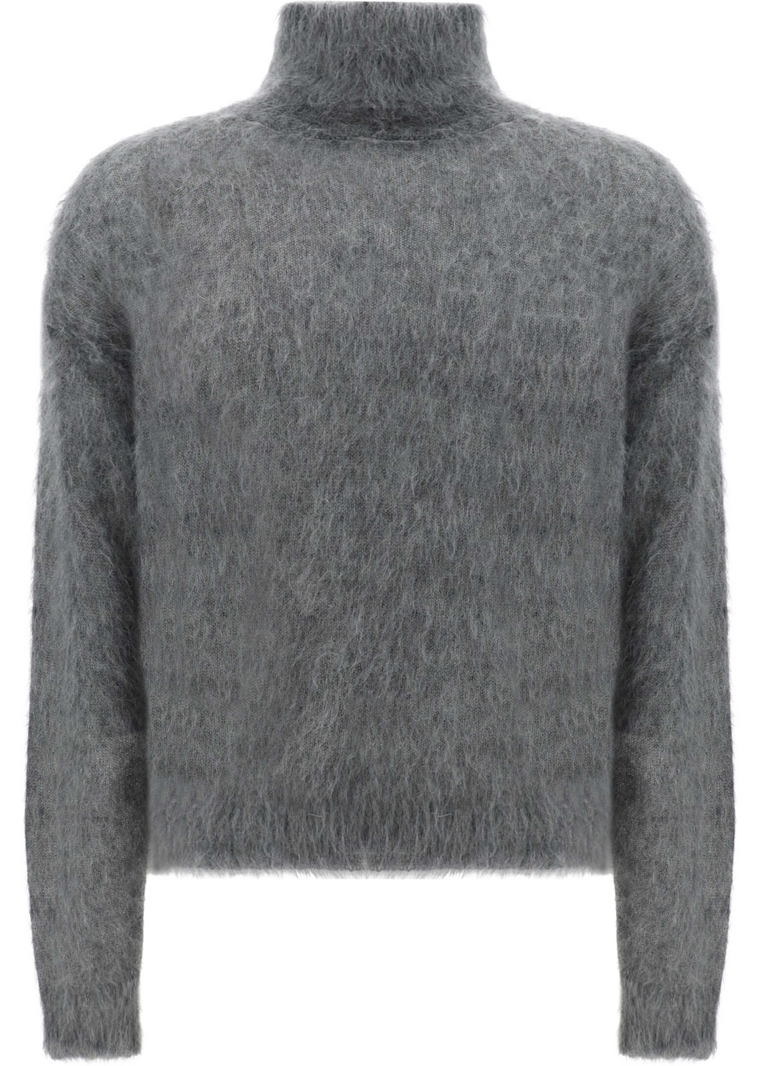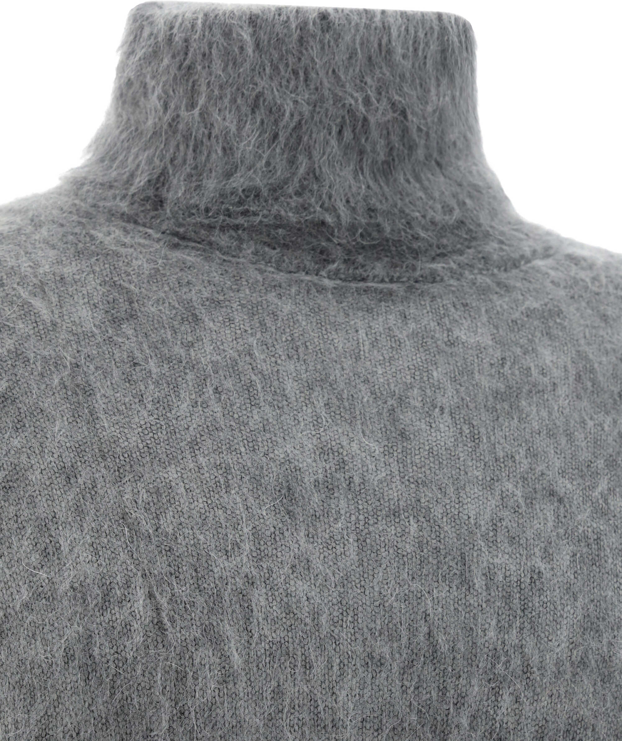 Mohair Wool Turtleneck Sweater by Saint Laurent featuring a high neck, a straight hem, a monochrome pattern, and a regular fit.