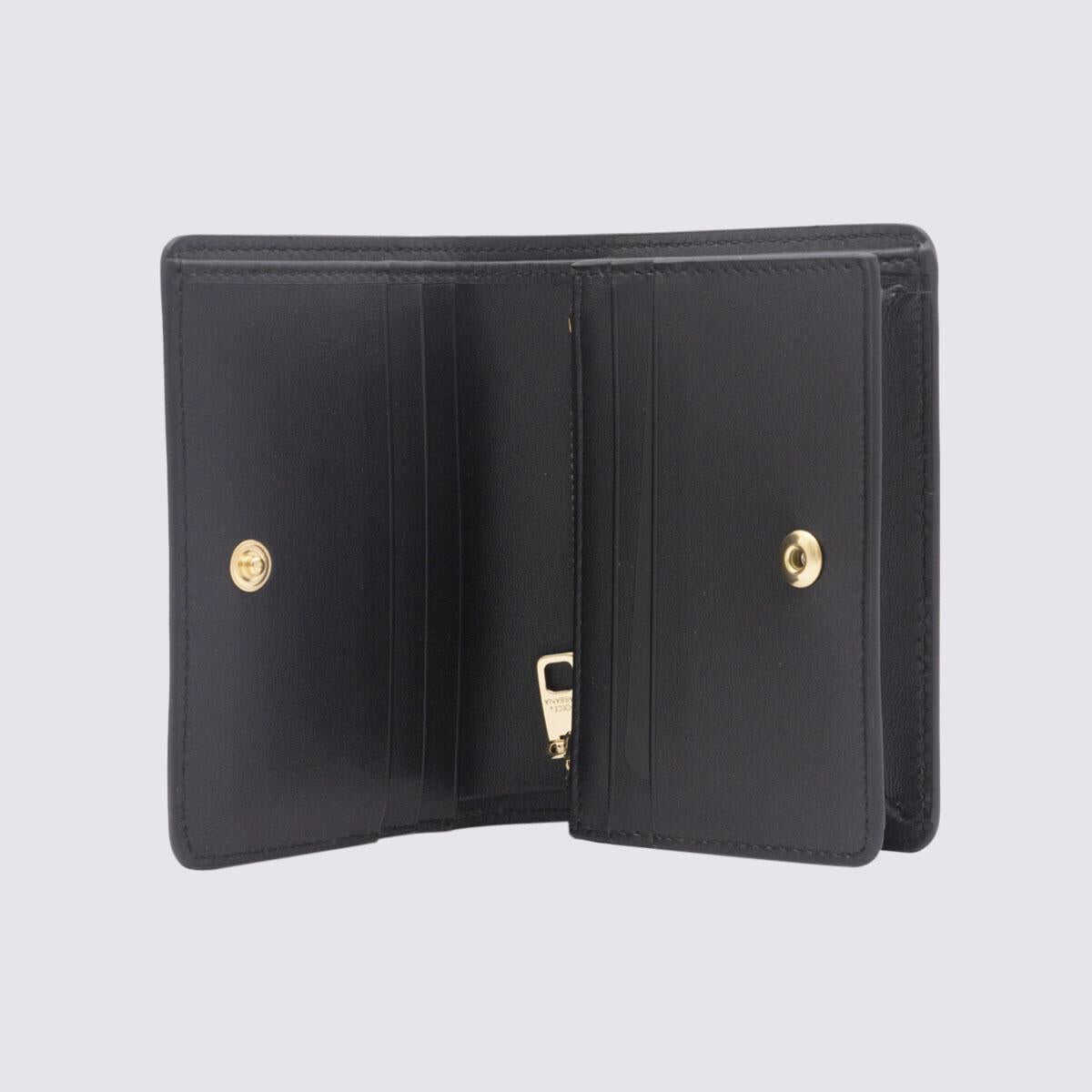 Black leather wallet from Dolce&Gabbana featuring gold-tone hardware, front logo plaque, bi-fold design, concealed press-stud fastening, internal card slots, internal zip-fastening pocket and internal note compartments.