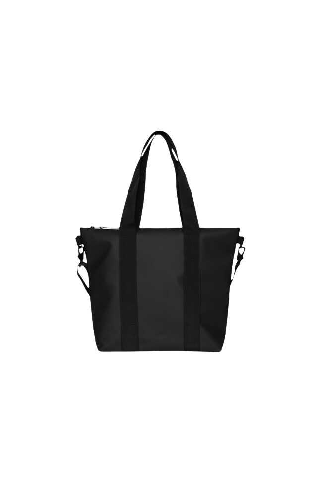 RAINS BAG, the signature Rains waterproof fabric, Tone-on-tone covered zip closure, One main compartment, Long fabric handles to carry by hand/shoulder with attachment ring, Removable fabric shoulder strap