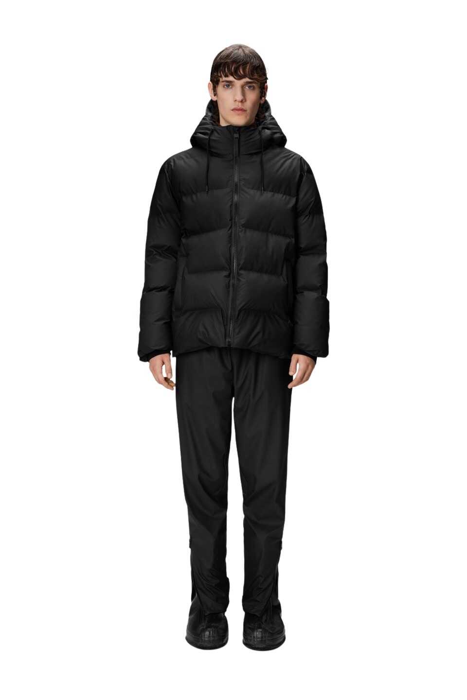 RAINS JACKET, Rains signature waterproof fabric, Insulation with iconic chamber technology, Insulated hood with elastic drawcord, Covered two-way zipper closure, Fleece-lined stash side pockets, Internal zippered chest pocket, Hidden ribbed storm cuffs, Double-welded seams, Weather-resistant rubberized hardware