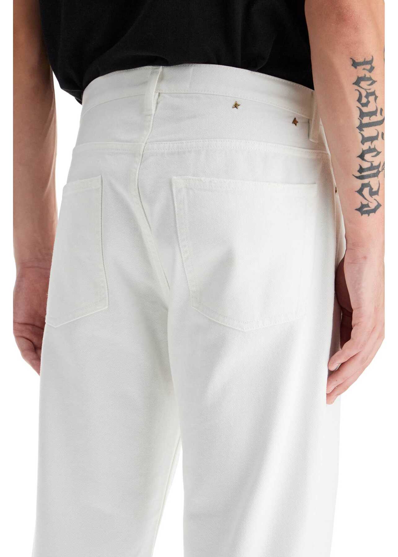 These five-pocket jeans by Golden Goose are made of stonewashed cotton denim, featuring a low waist and wide leg. They are adorned with a double star on the back. The model is 182 cm tall and wears size 30.