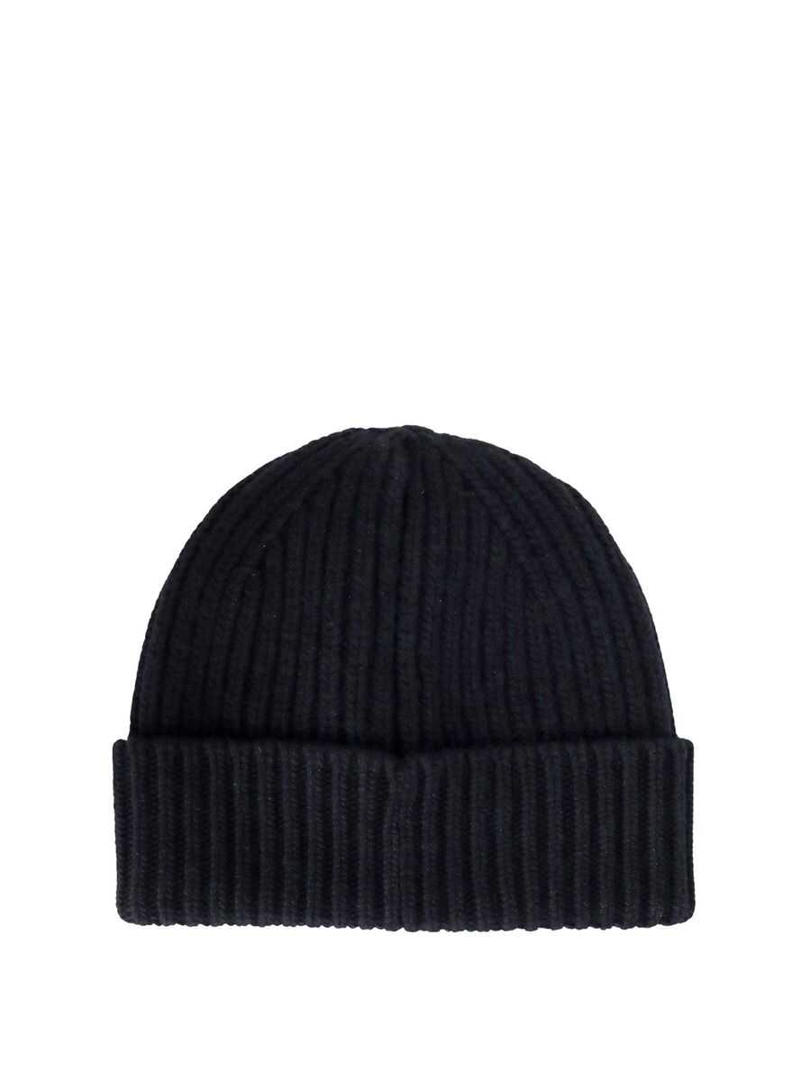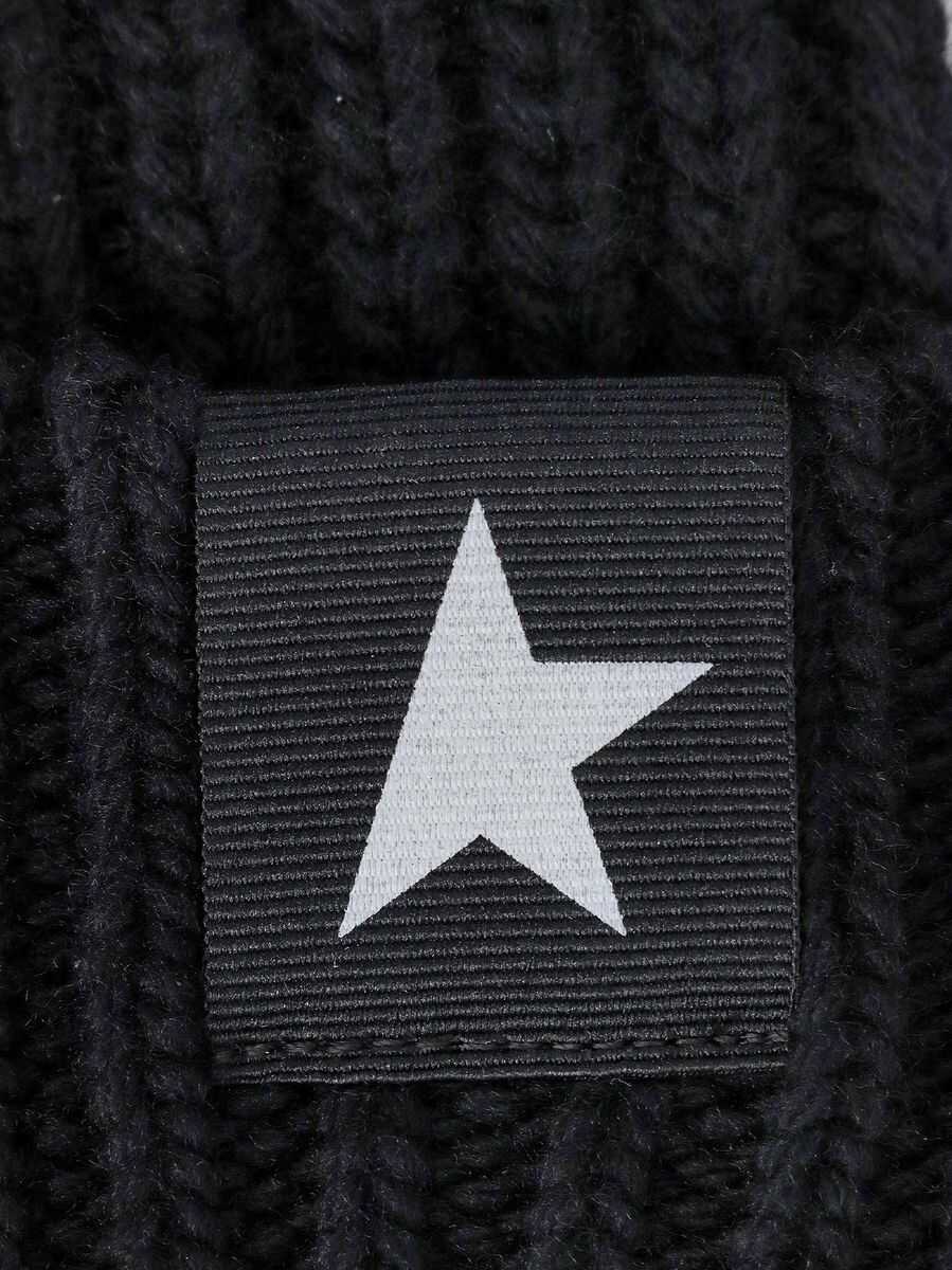 black wool star patch detail ribbed knit turn-up brim