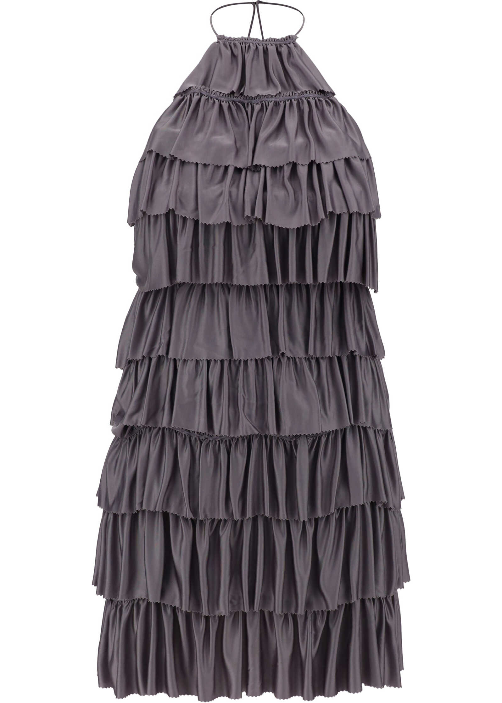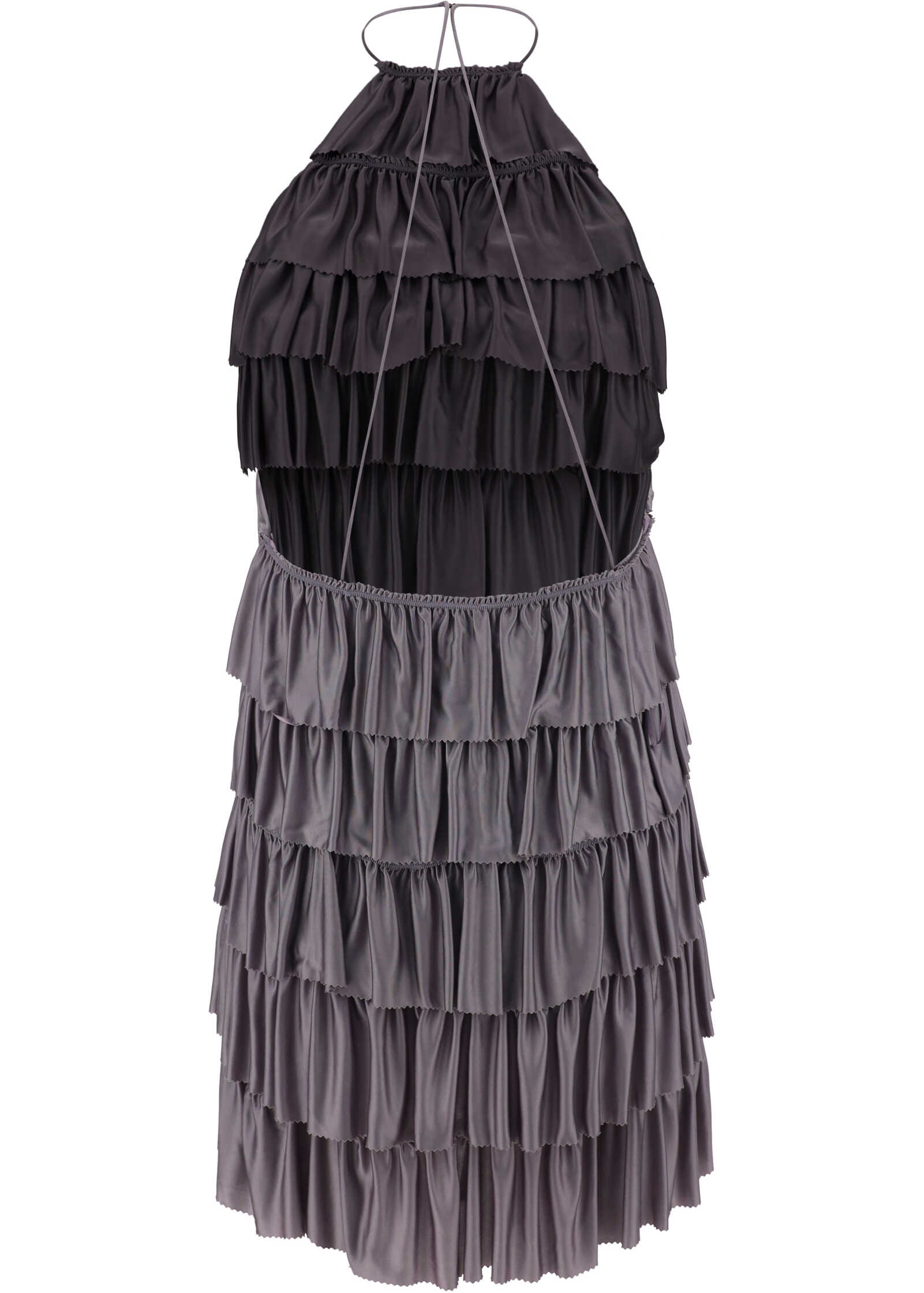 Mini Dress by Tom Ford, jersey pattern, ruffle design, plunging neckline, deep back neckline, monochrome pattern, close fit.