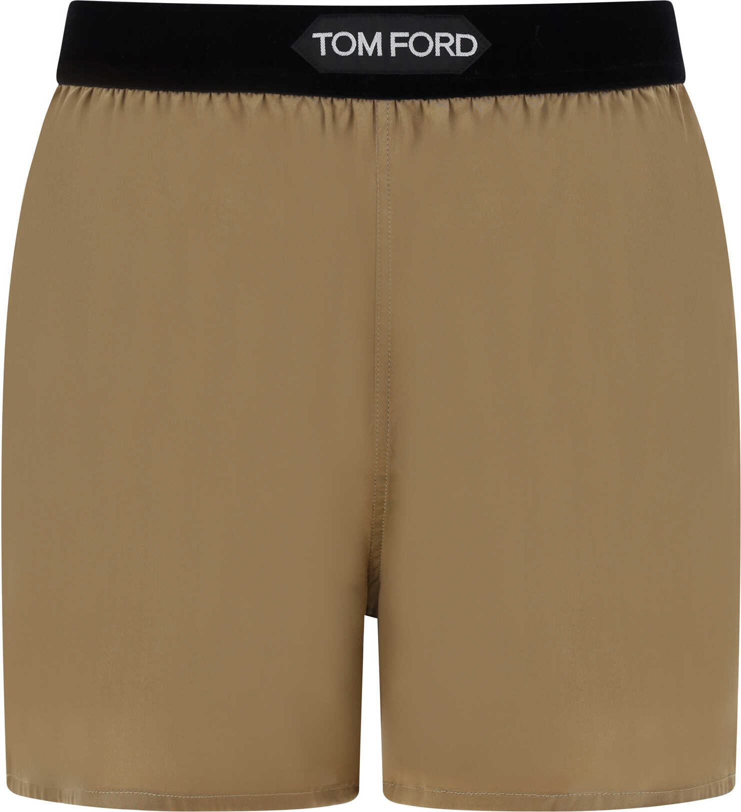 Silk Pants by Tom Ford, elastic waistband with contrasting brand logo, soft model.