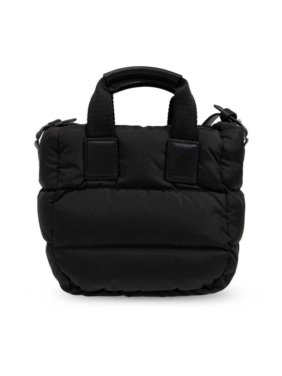 black cotton blend zip-fastening compartment quilted two top handles adjustable shoulder strap logo patch to the front