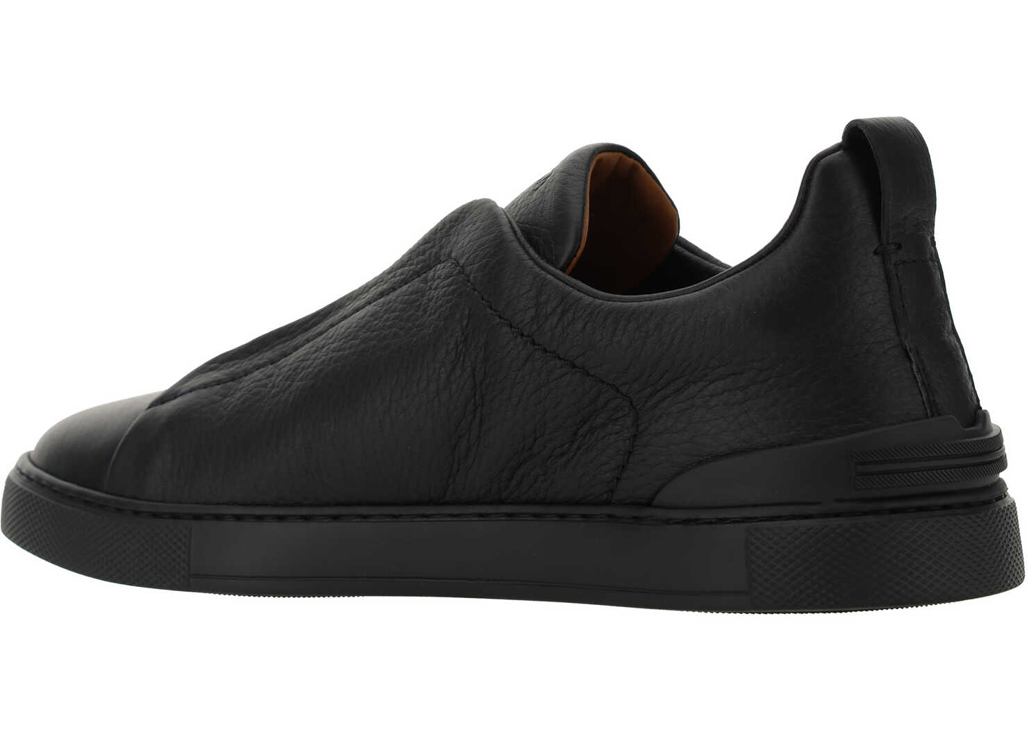 Calfskin Sneakers by Zegna, suede leather design, flat sole, slip-on style, press-stamped logo insole.