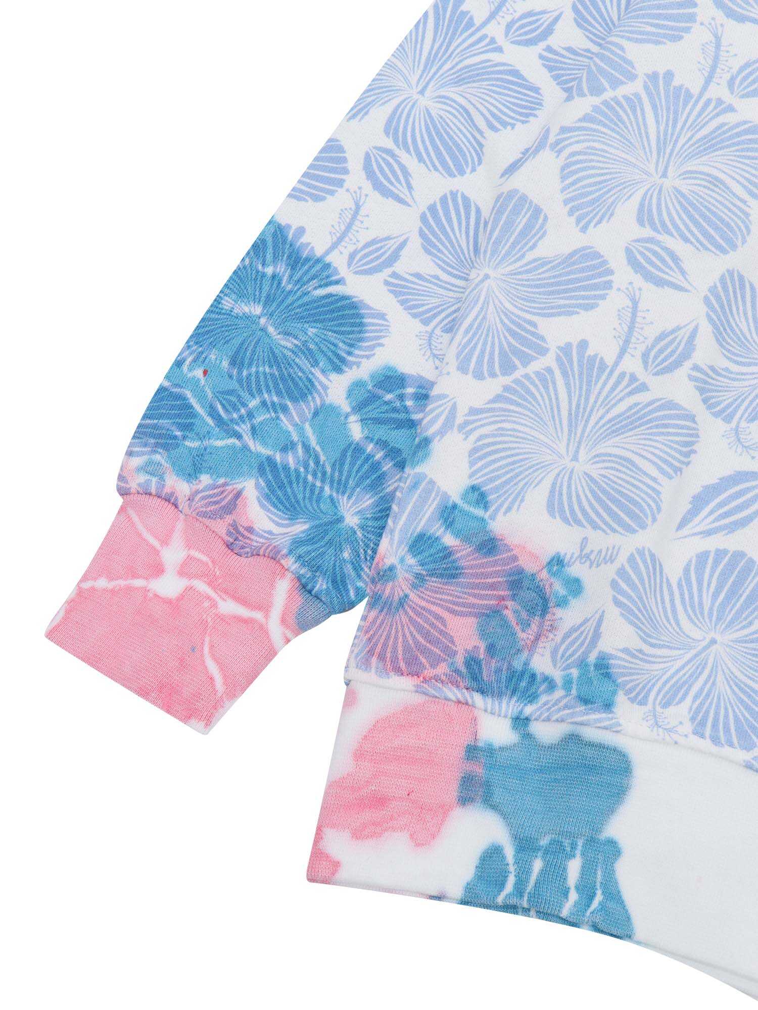 MSGM girls' white sweatshirt with contrasting all-over flower print, cuffs, crew neckline, contrasting embroidered logo on the front.