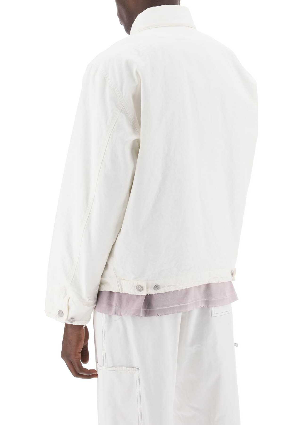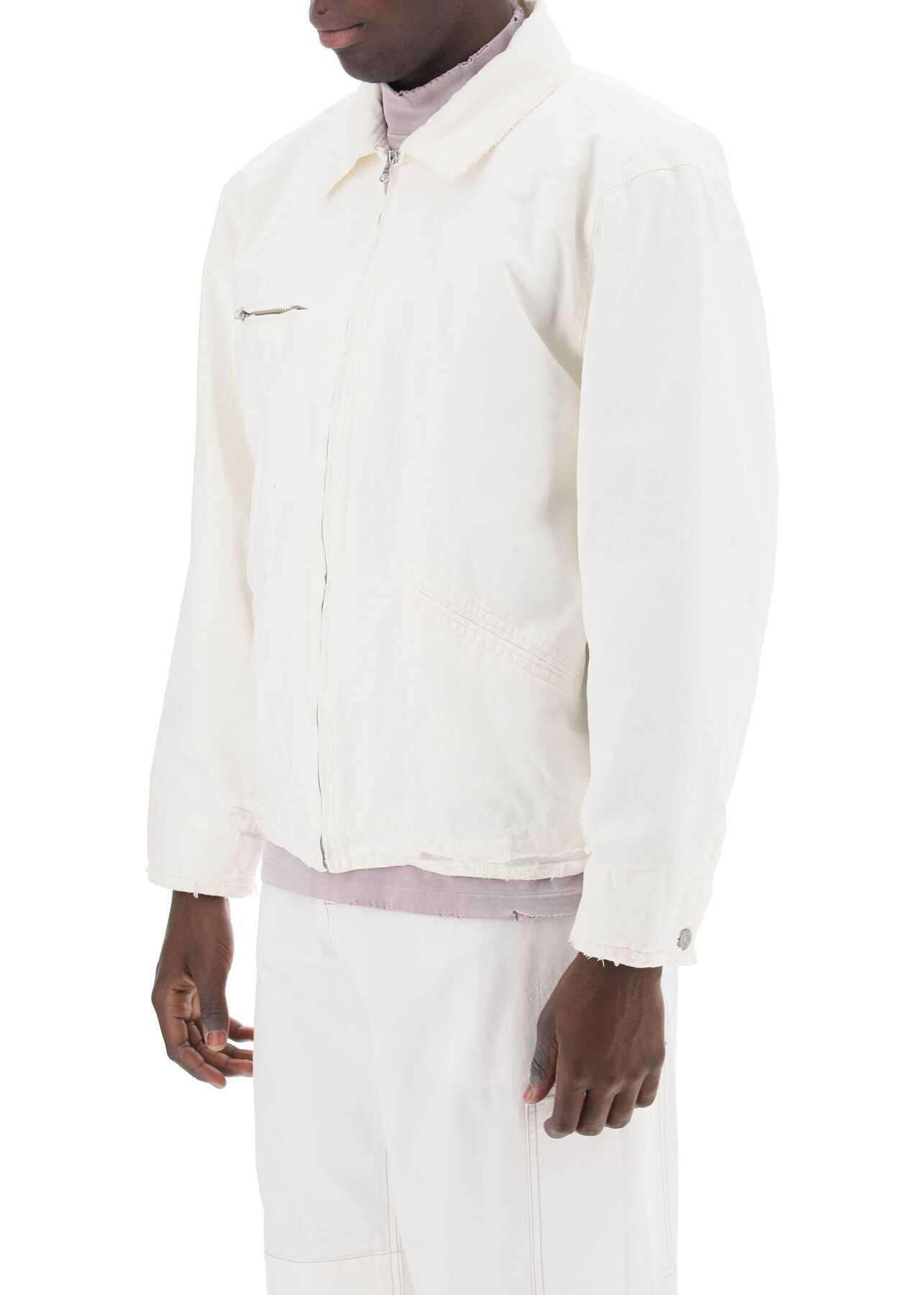 Crafted in sturdy distressed cotton canvas, this short jacket from the MM6 collection by Maison Margiela features a shirt collar and full zip closure. The cuffs and hem are adjustable with branded snap buttons, while the interior is finished with quilted lining and lightweight polyester padding. Three external pockets and an internal pocket complete the piece. Regular fit. Model is 187 cm tall and wears size IT 48.