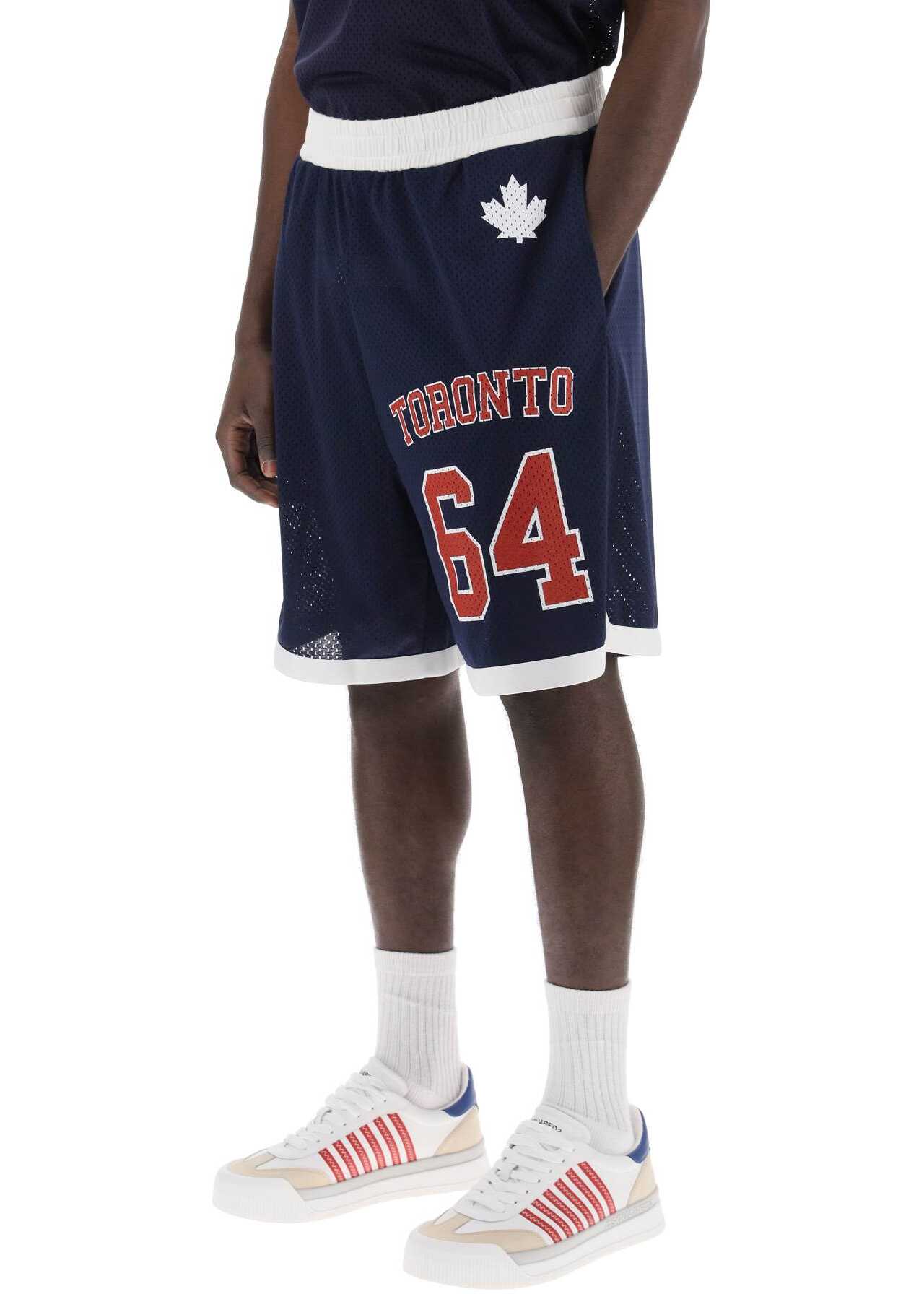 Dsquared2's sporty Bermuda shorts feature a wide fit and low crotch, enriched with basketball-inspired prints on the front and back. Made of mesh with contrasting details, they have an elasticated waistband and side pockets. The model is 187 cm tall and wears size L.