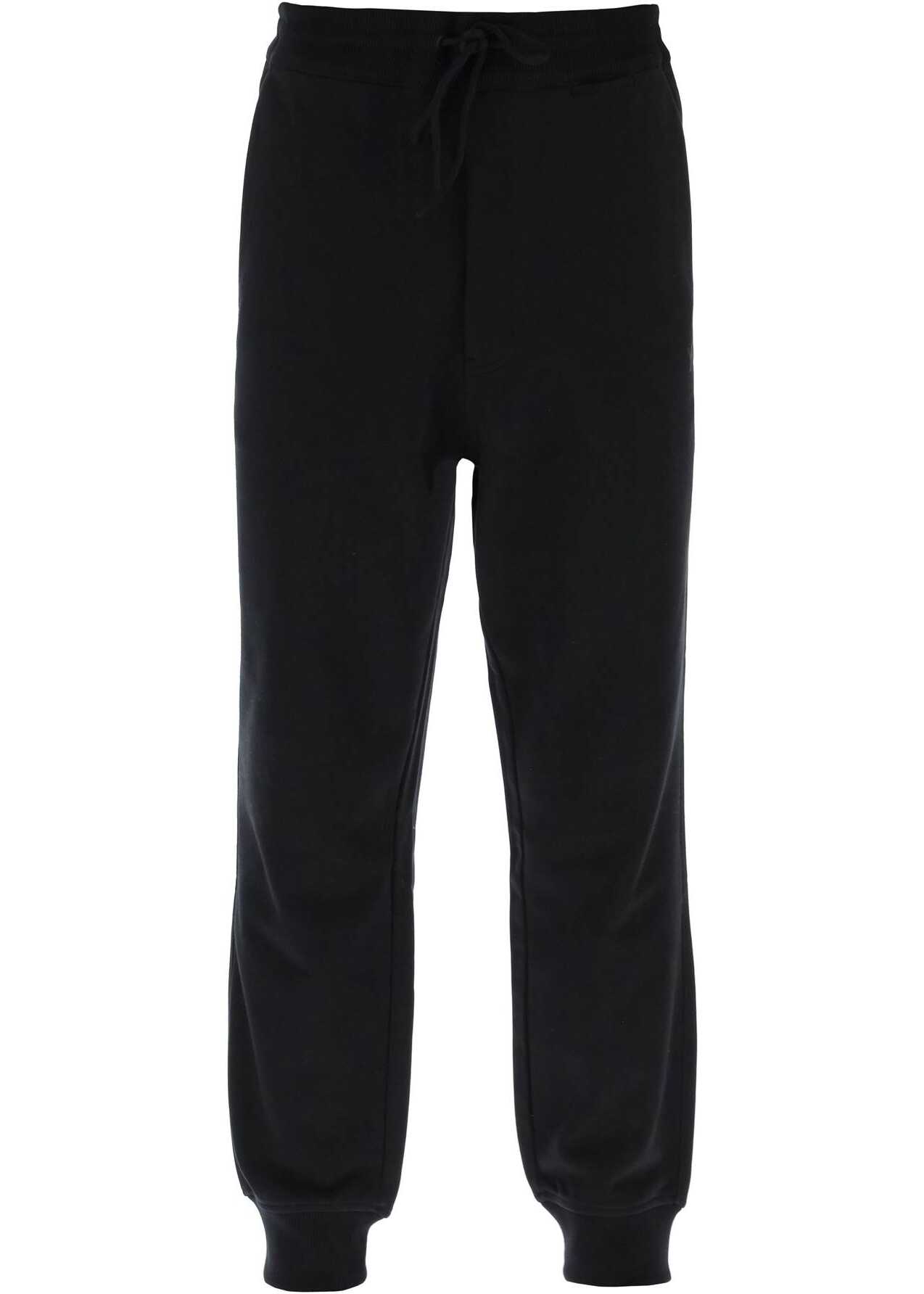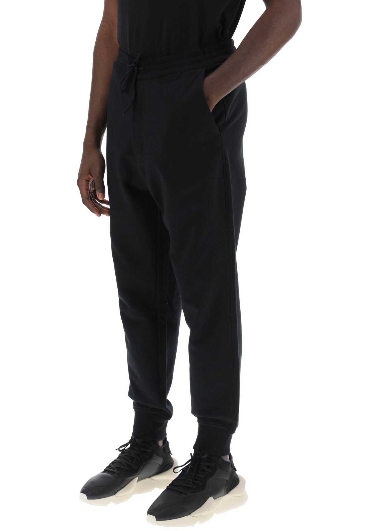 Y-3 jogger pants made of brushed cotton blend jersey, with a loose and tapered fit thanks to the ribbed edges. They feature an adjustable drawstring waist, hidden zip closure, slanted side pockets, one patch pocket on the back, and are finished with a tone-on-tone rubber logo detail under the left pocket. The model is 187 cm tall and wears size L.