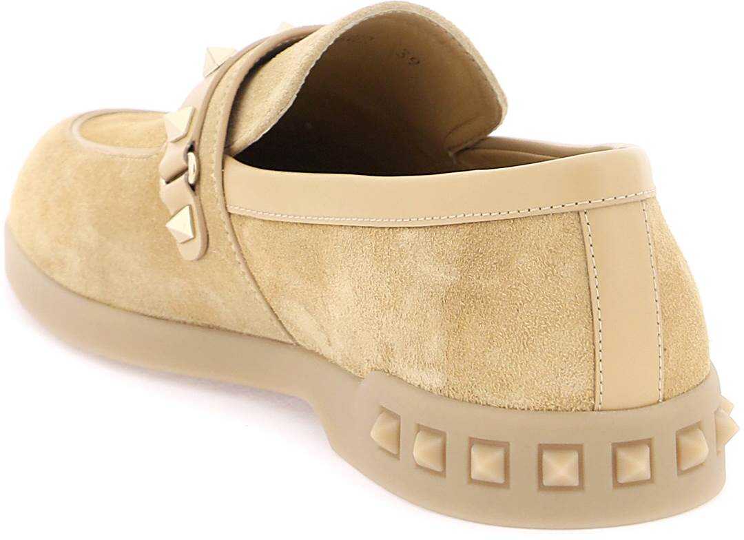 Valentino Garavani's Leisure Flows Moccasins are made of suede with smooth leather trims. The strap is adorned with iconic platinum-finished studs on the vamp, while the interior features a leather lining and removable insole. The customized rubber sole has stud detailing on the back for added style.