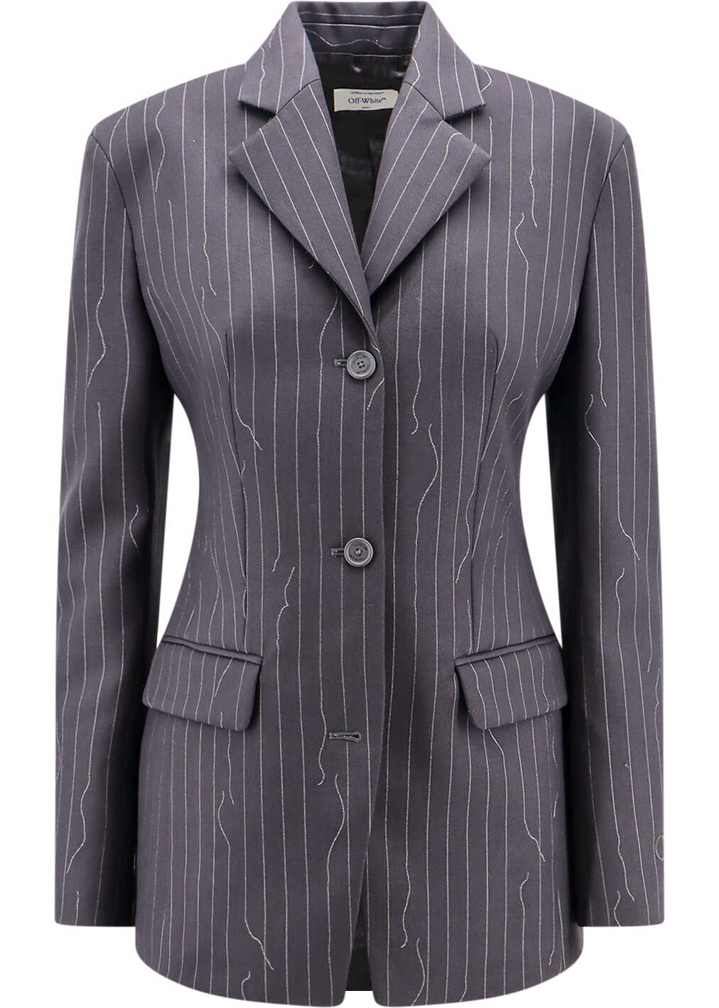 Pinstripe fabric blazer with shoulder pads
