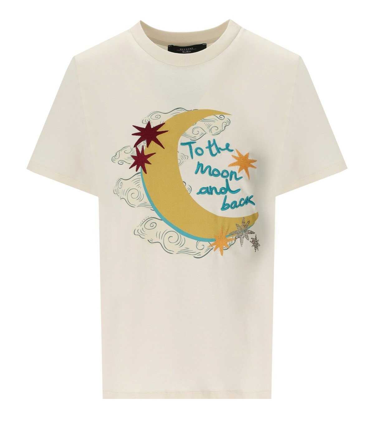 Cinema T-shirt by Max Mara Weekend made of sand-colored cotton jersey, with multicolored embroidery and prints on the front. Regular fit.