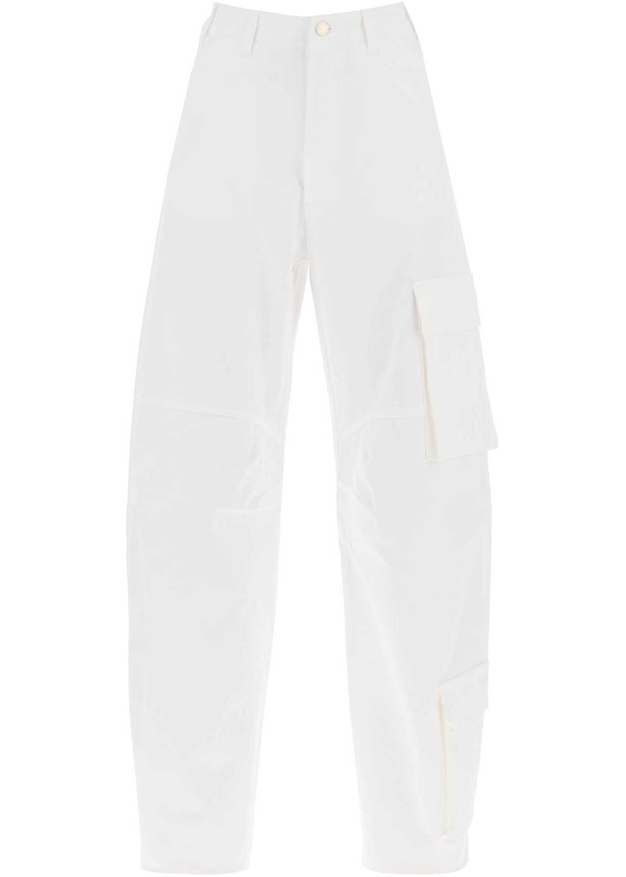 DARKPARK cargo pants crafted in stretch cotton drill, with multi-pocket design characterized by a baggy fit with curved legs. They feature front zipper-fly and button closure, side slash pockets, belt loops, patch pockets and logoed jacron on the back. The model is 177 cm tall and wears size 26.