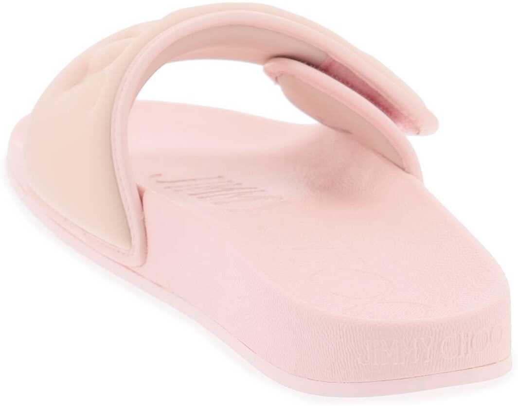 Jimmy Choo rubber slides with adjustable, leather-finished band featuring the embossed maxi logo lettering. Anatomical footbed.