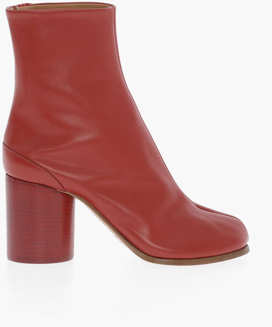 Mm22 Leather Tabi Ankle Boots With Wood Heel 8Cm