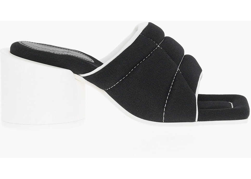 Mm6 Square Toe Padded Fabric Mules Heel 7.5Cm