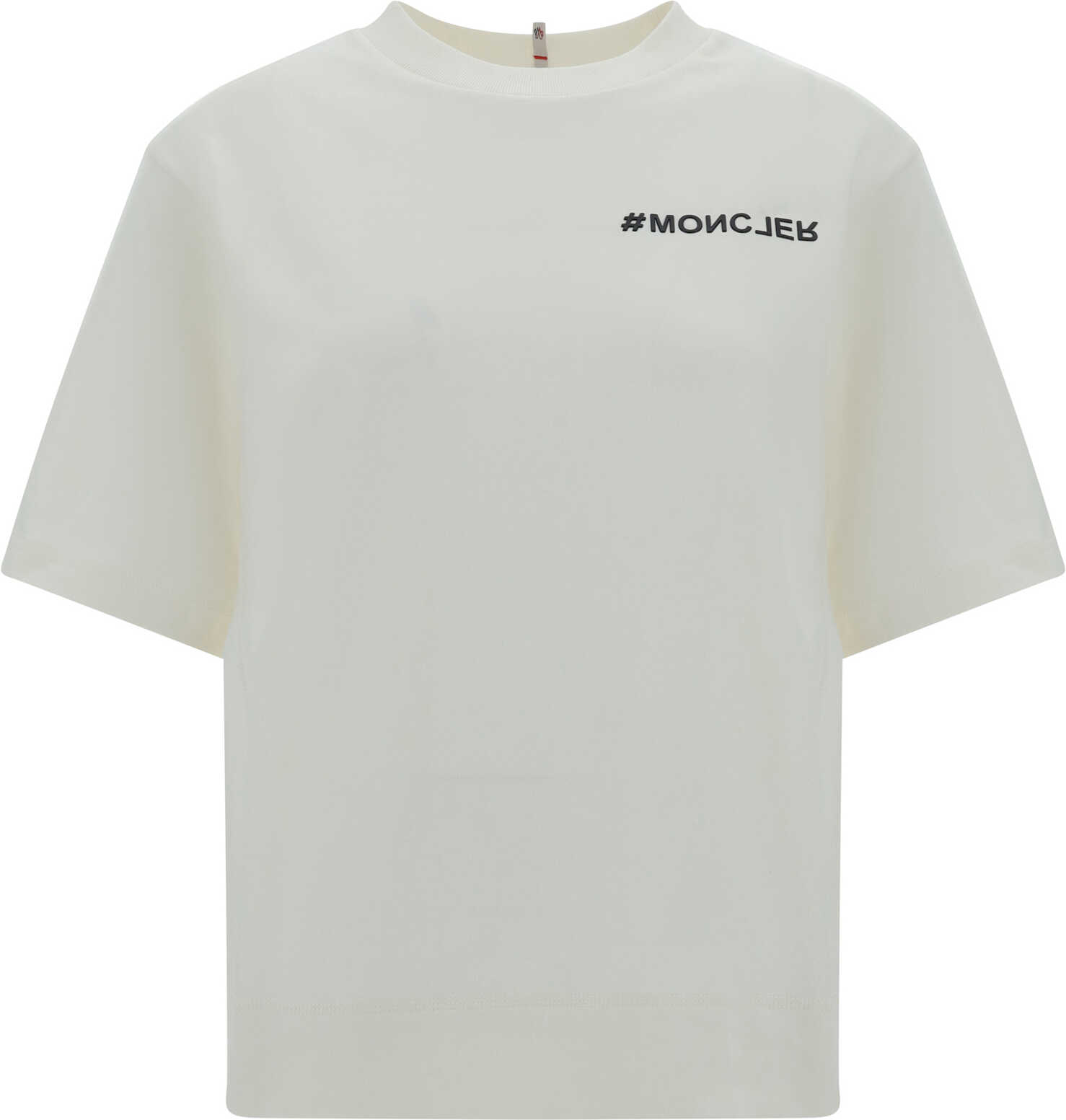 Cotton T-Shirt frby Moncler Grenoble, ribbed crew neck, contrasting iconic brand monogram on front, paneled design, monochrome pattern, regular fit.