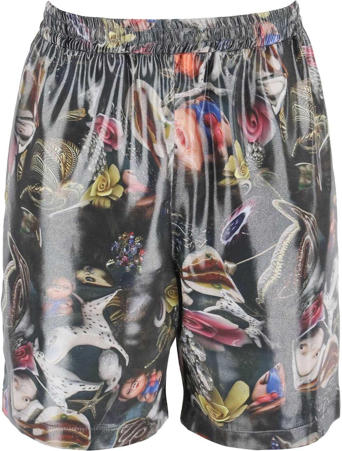 Acne Studios relaxed fit shorts, made from laminated technical twill with a print by artist Per B. Sundberg all over. They feature an adjustable elastic waistband with internal drawstring, side pockets and a patch pocket on the back. The model is 187 cm tall and wears an IT size 48.