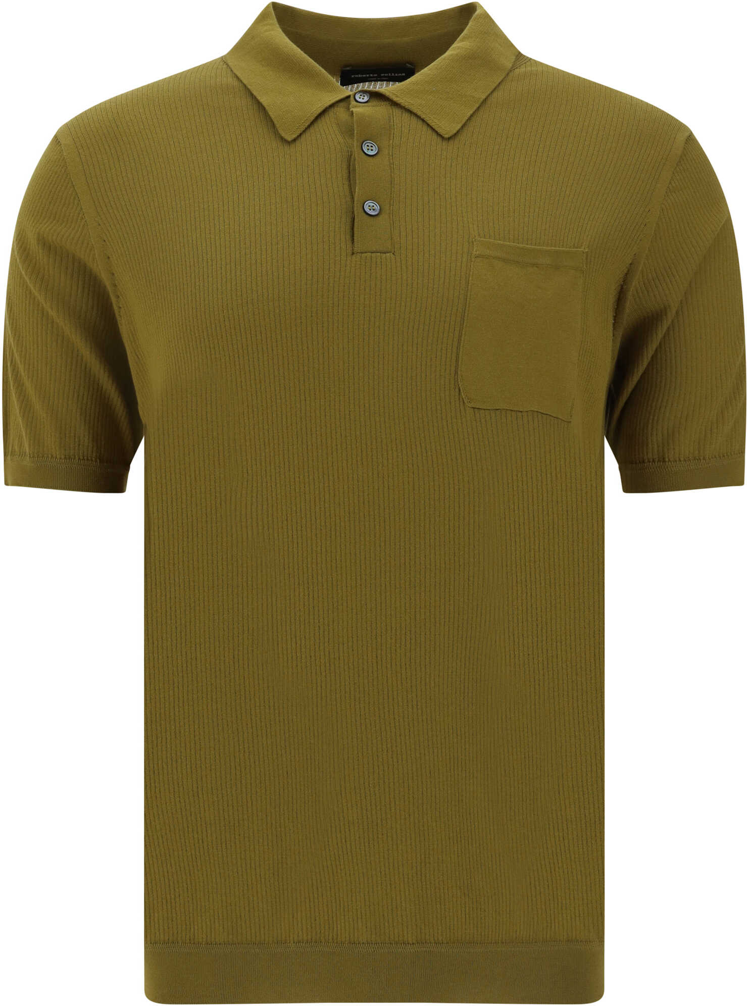 Cotton Polo Shirt by Roberto Collina, features classic ribbed collar, front buttons, front patch welt pocket, all-over ribbed design, regular fit.