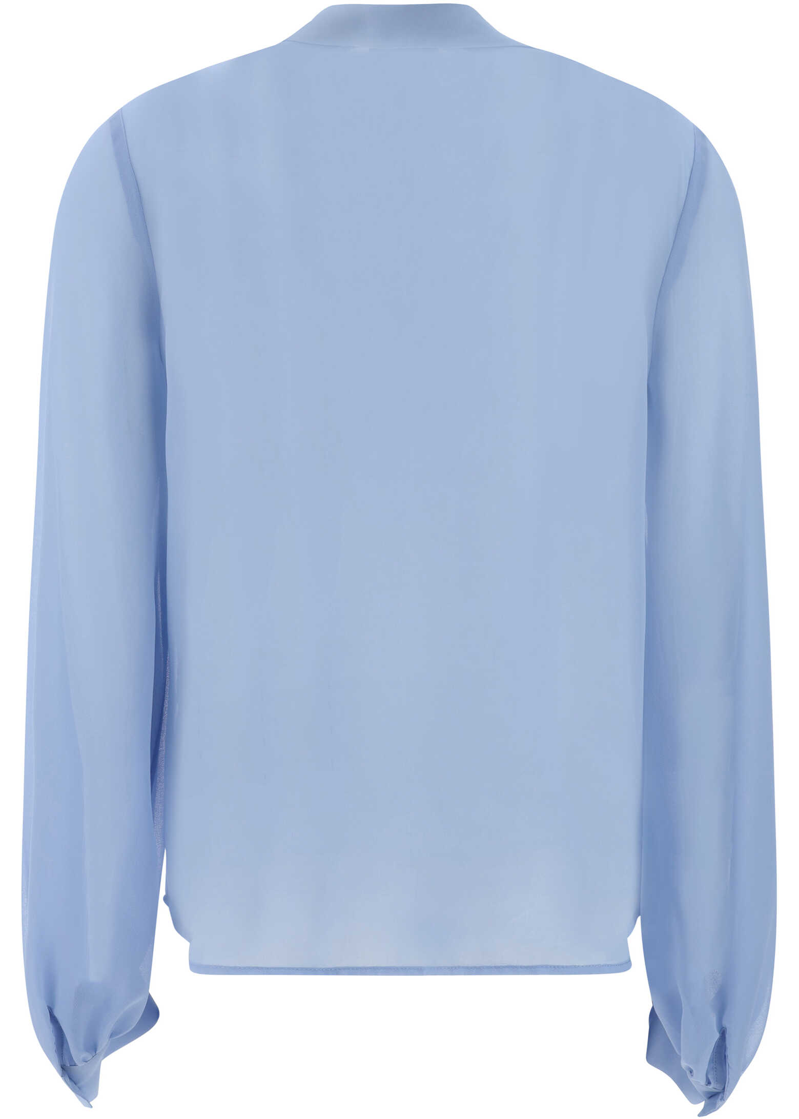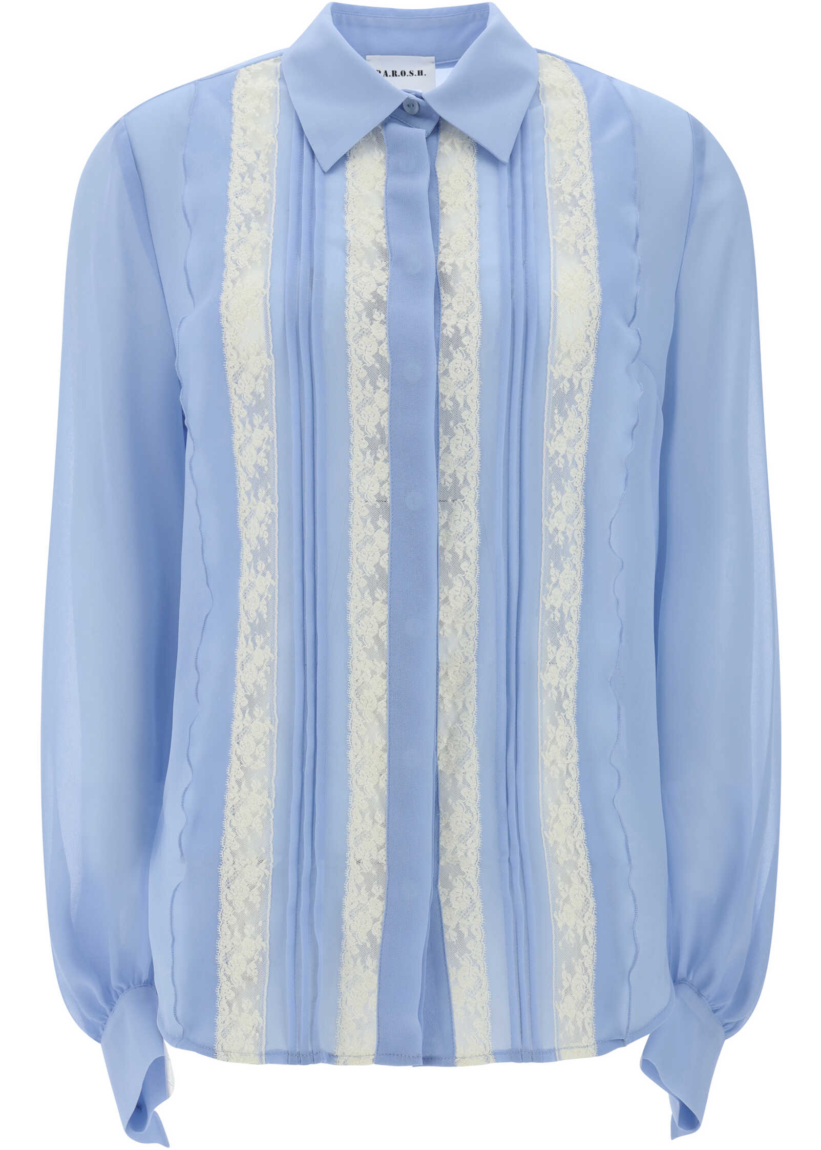 Shirt by P.A.R.O.S.H., classic collar, concealed button front closure, adjustable button cuffs, semi-transparent design, pleated lace applique detail on front, monochrome pattern, regular fit.