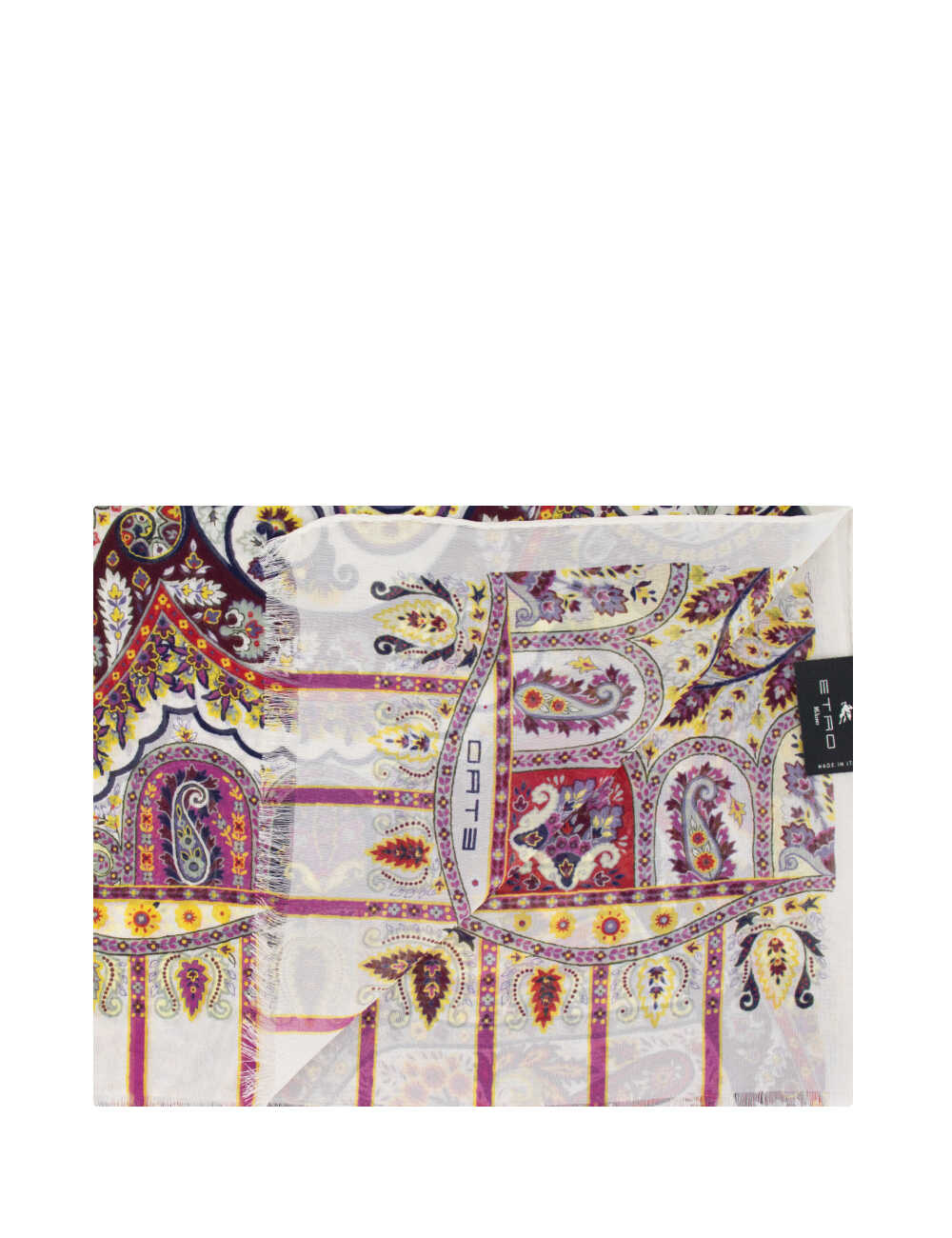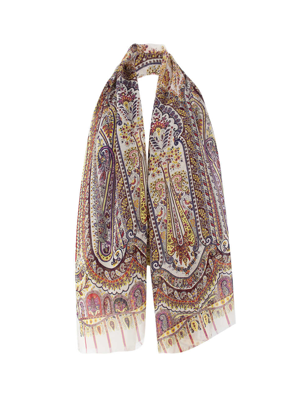 Silk scarf with Paisley print, edges decorated with small fringes, dimensions: 70 x 170 cm.