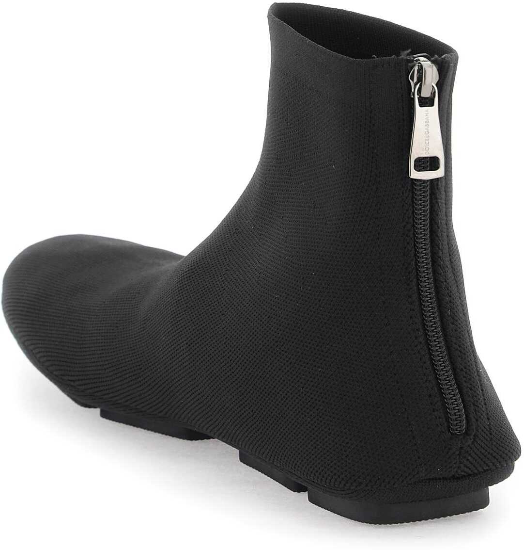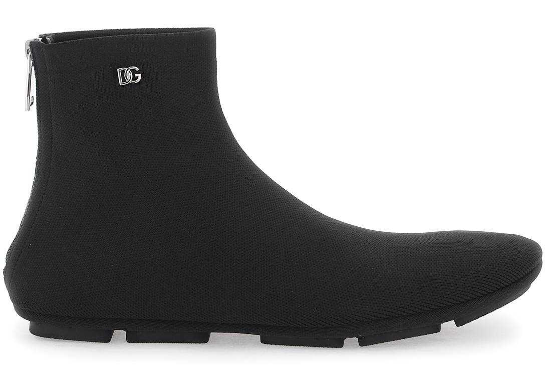 Dolce & Gabbana ankle boots made of stretch knit with a sock design. Back zipper closure, silver metal DG logo on the side, unlined interior with leather insole and rubber sole.