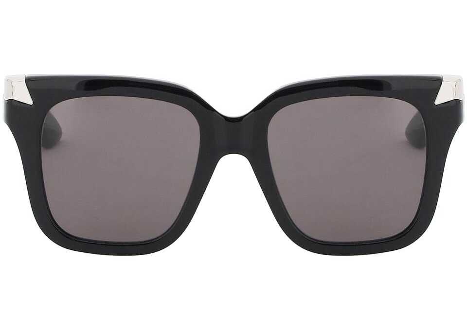 Alexander McQueen sunglasses made of acetate with smoke lenses and 100% UVA/UVB protection. Oversized frame with two lightweight silver metal rivets on the front and laser-engraved logo lettering on the temples.