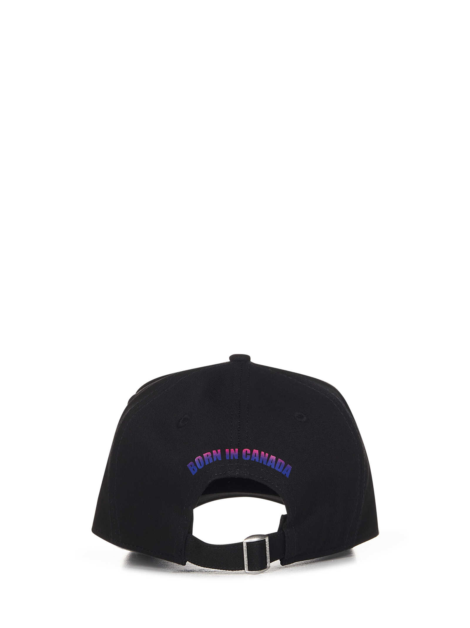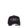 Black cotton gabardine baseball hat with logo print on the front.