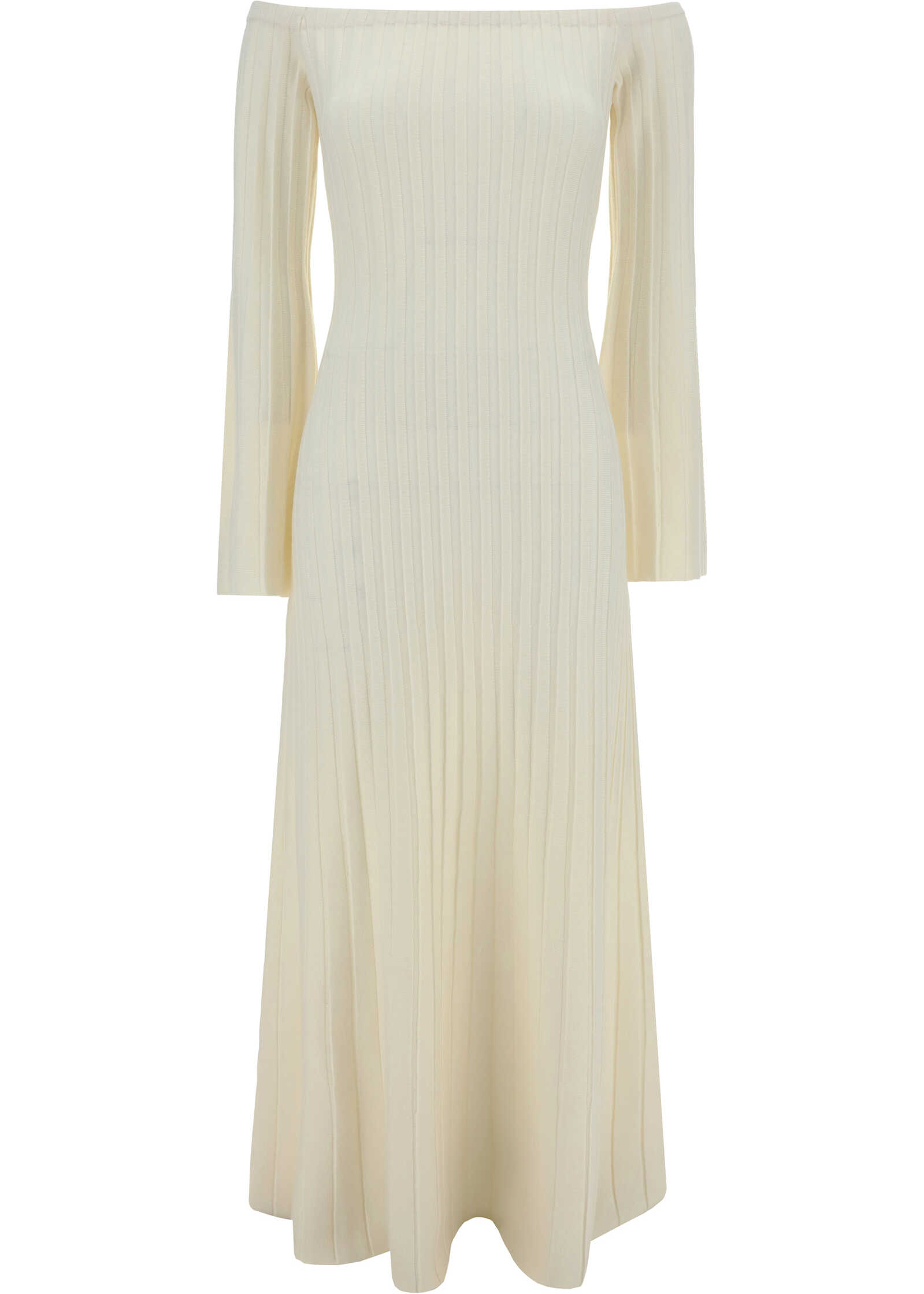 Wool Menil Dress by Gabriela Hearst, long off-shoulder design, all-over ribbed design, monochrome pattern, regular fit.