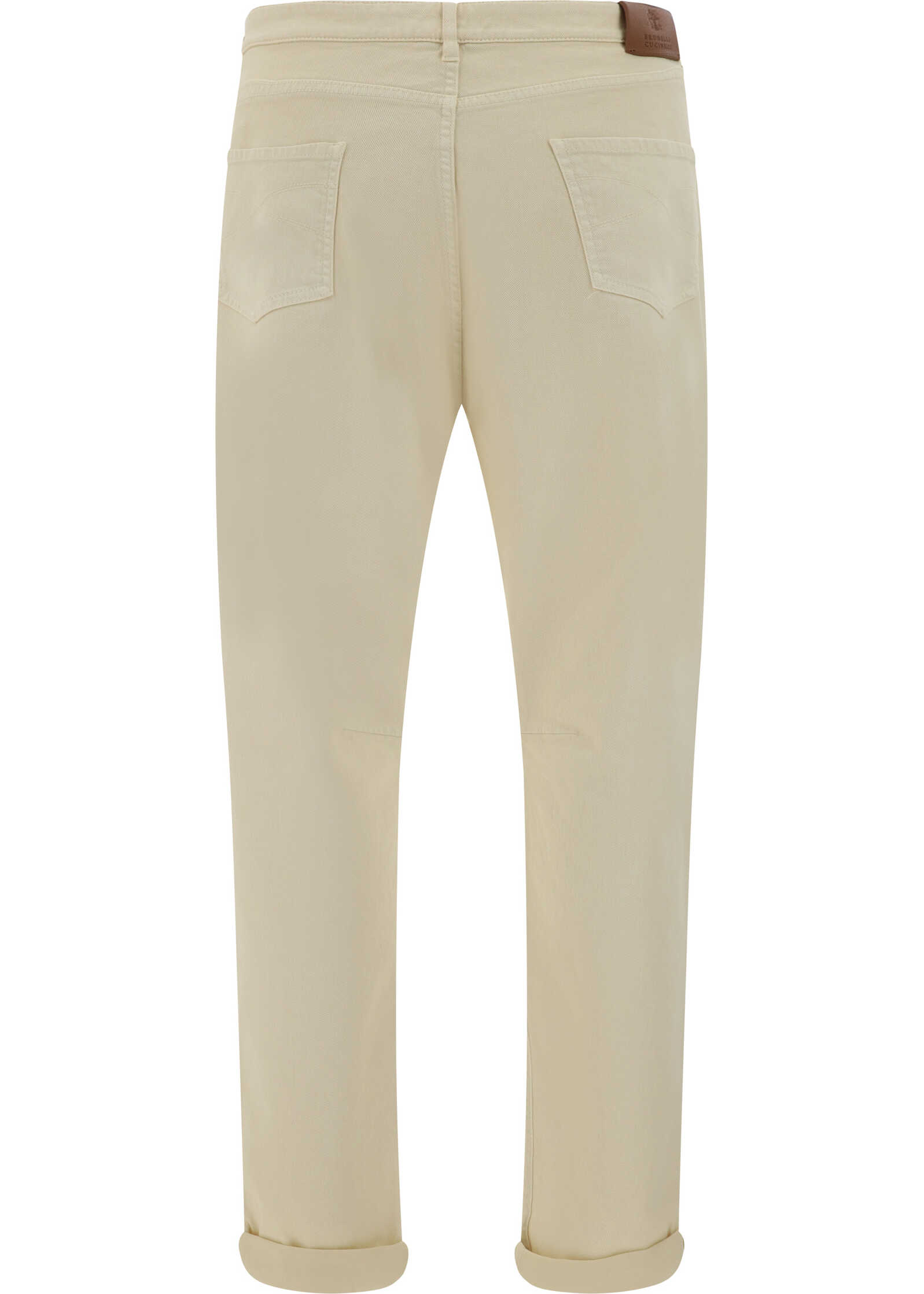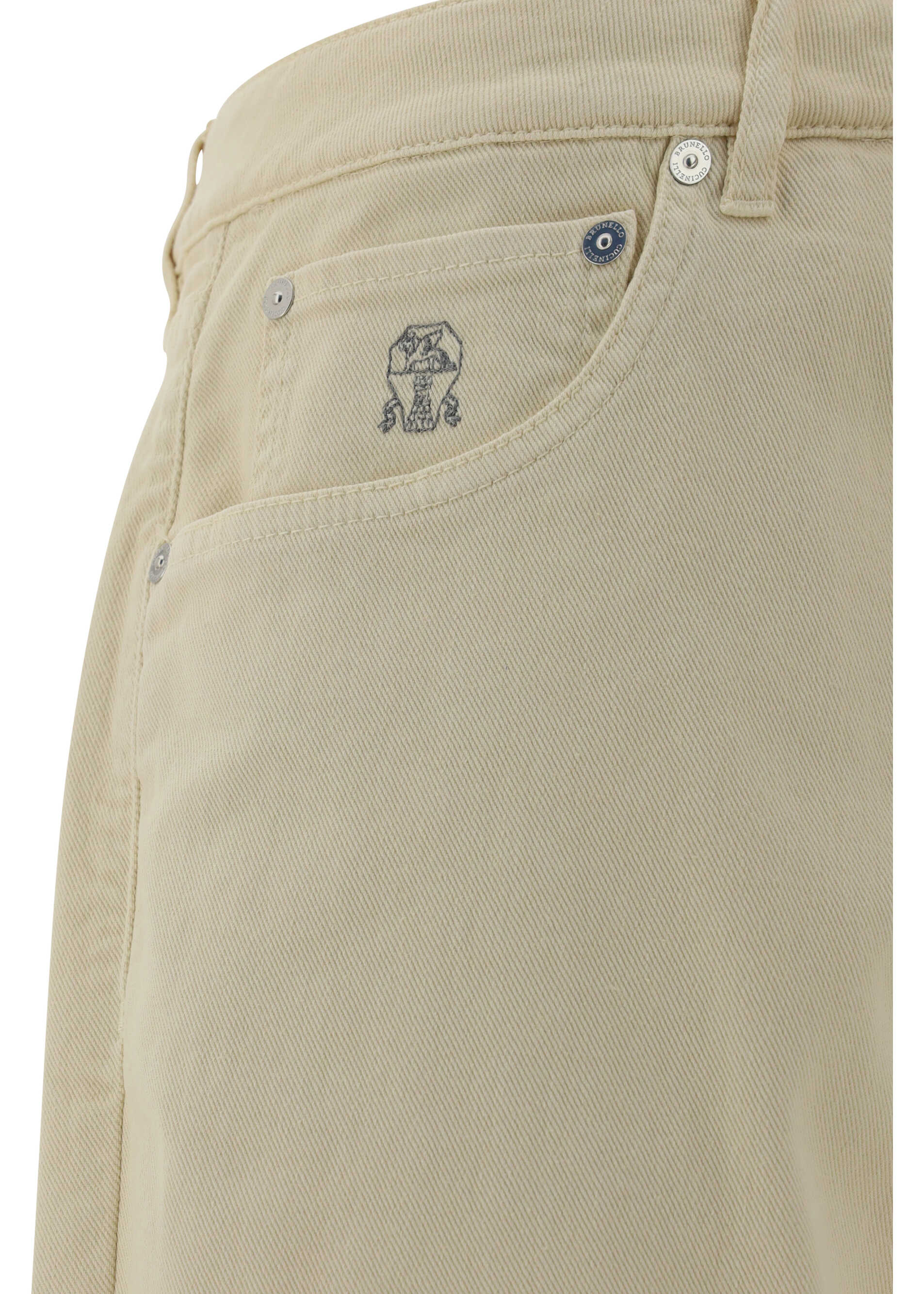 Cotton Pants by Brunello Cucinelli, featuring a denim design, a five-pocket style, a front button fastening, waistband loops, an iconic leather patch with brand signature press-stamped applique at the back, and a brand logo embroidered on the frotnale pocket.