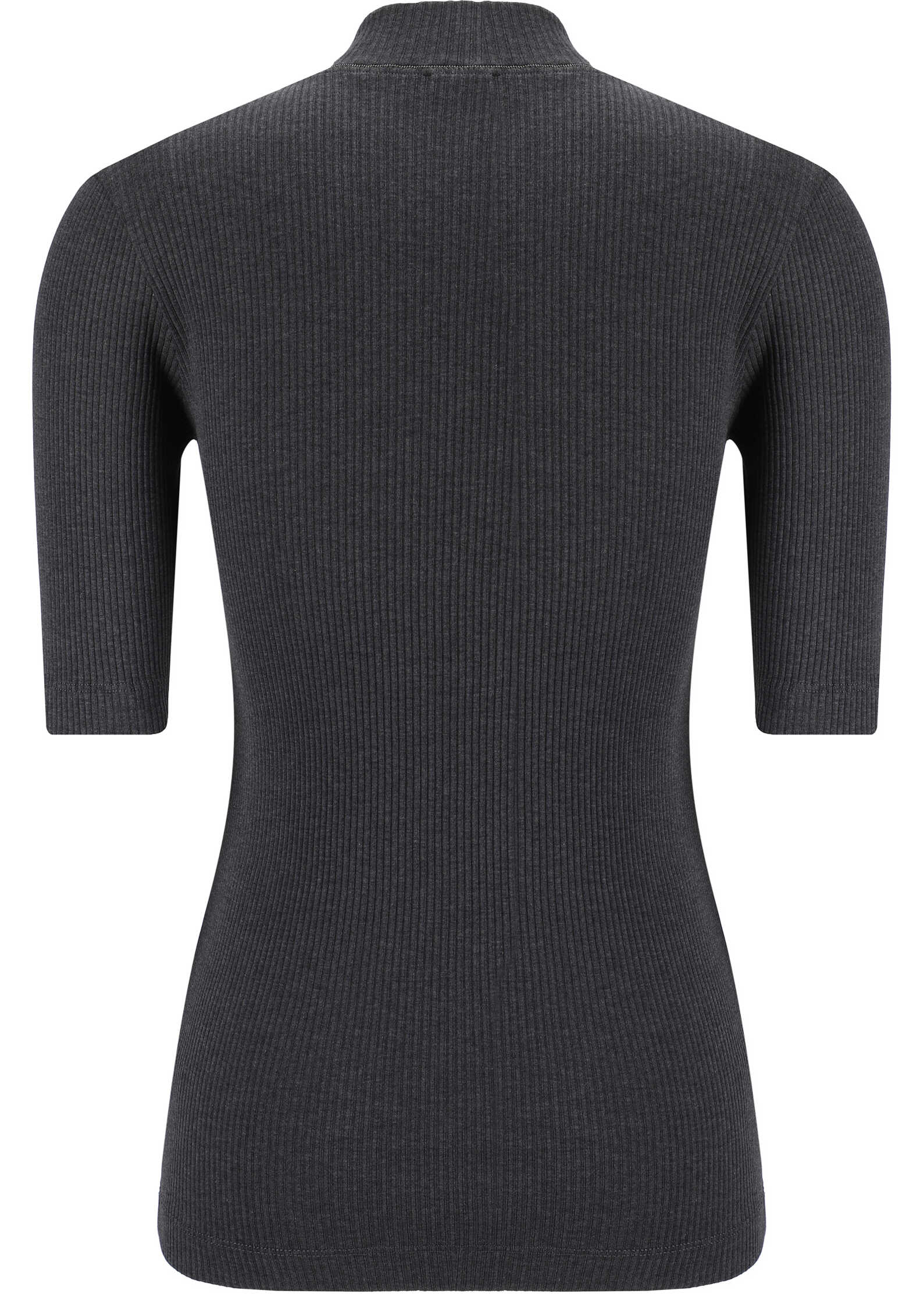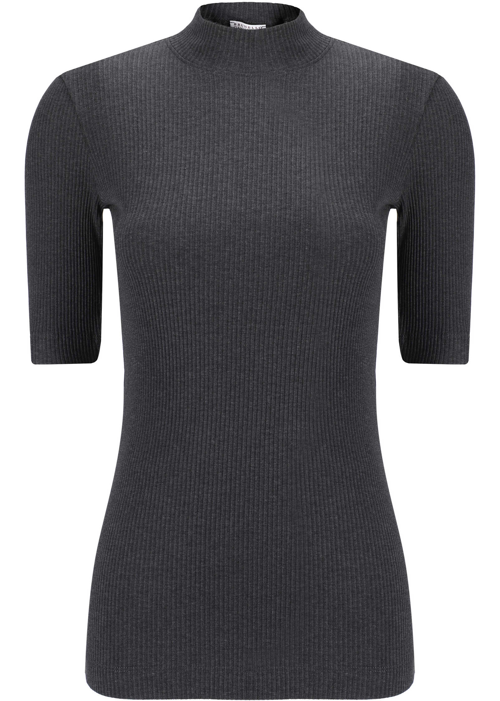 Cotton Knit by Brunello Cucinelli, high crew neck, three-quarter sleeves, all-over ribbed design, slim fit.