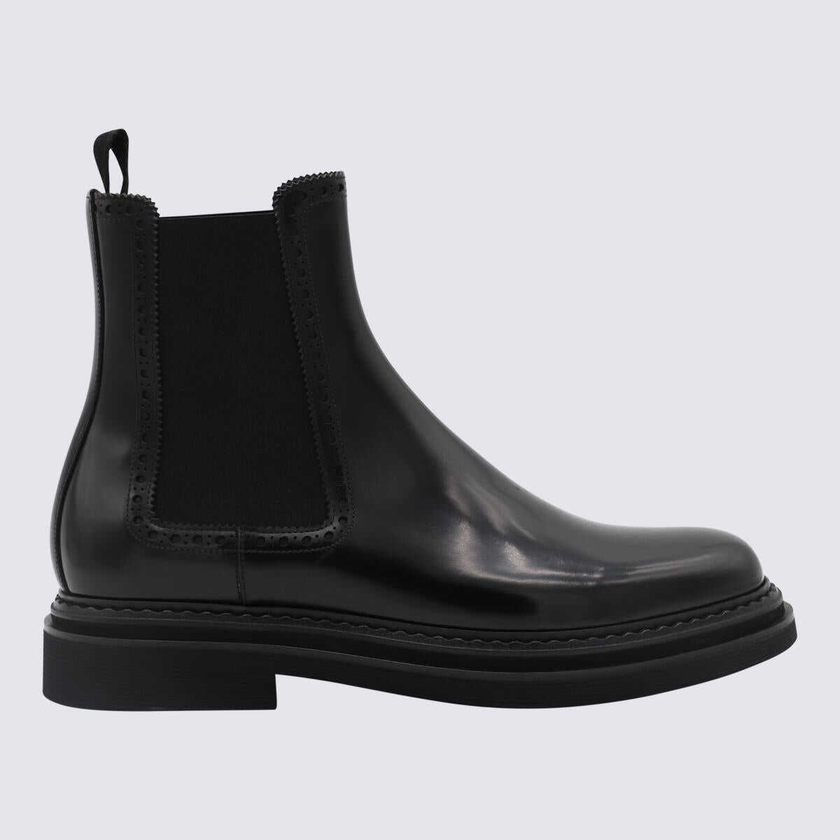 Black leather boots from Dolce&Gabbana featuring round toe, ankle height and leather sole.