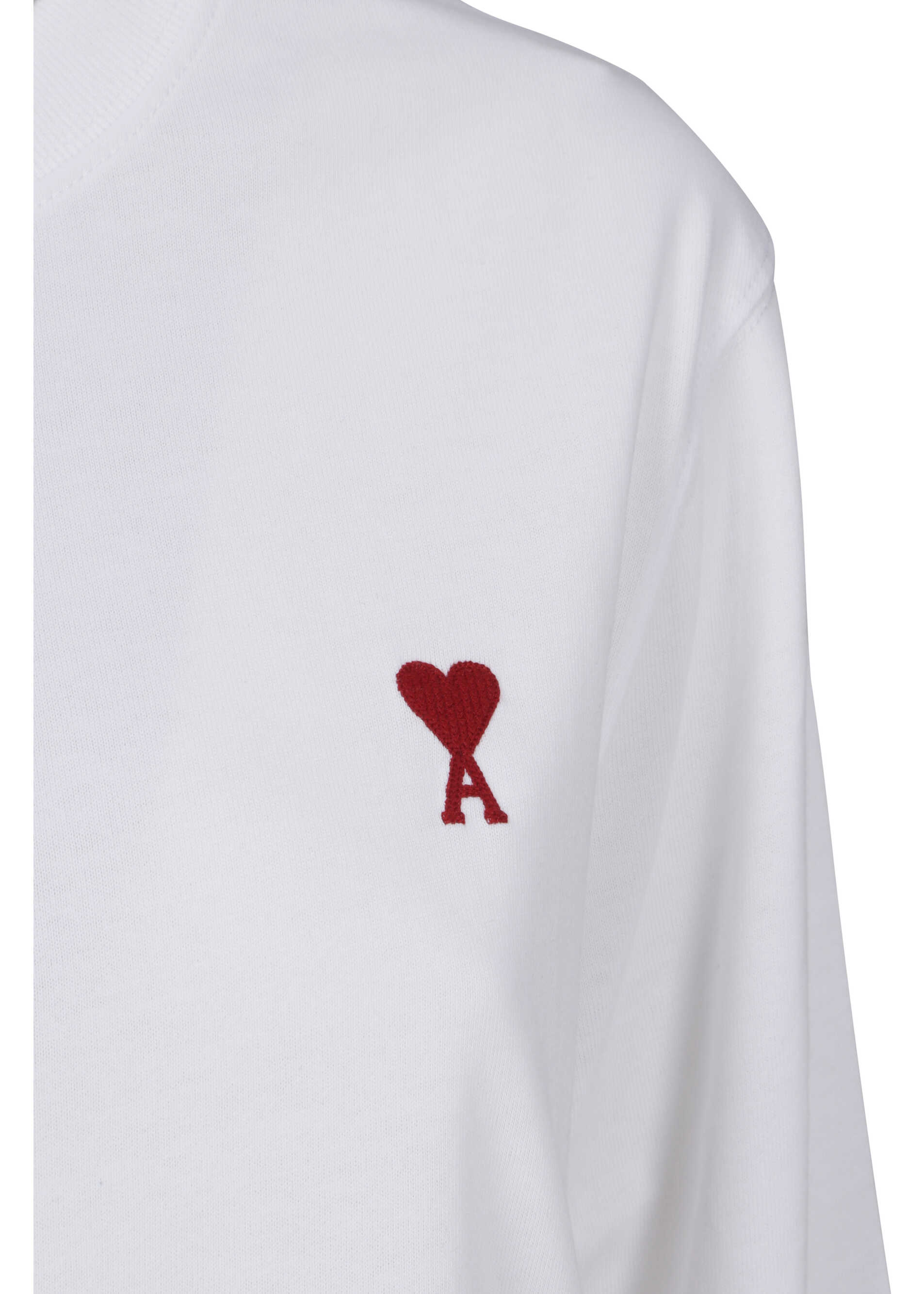 Cotton ADC Long Sleeve Jersey by Ami Paris, iconic contrasting embroidered brand logo on front, monochrome pattern, regular fit.