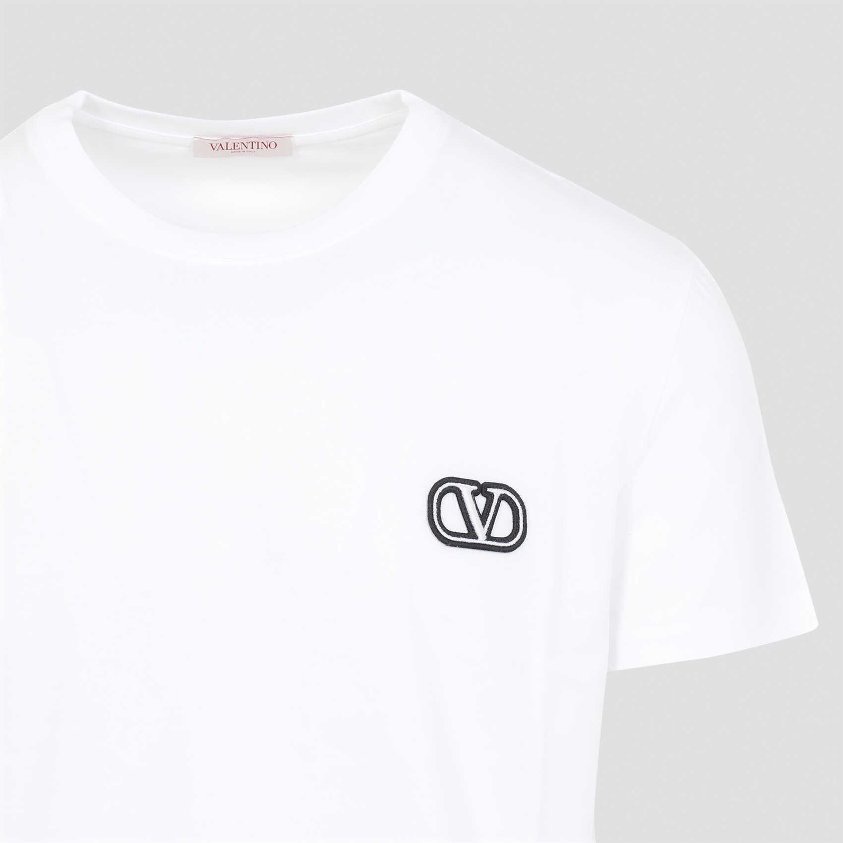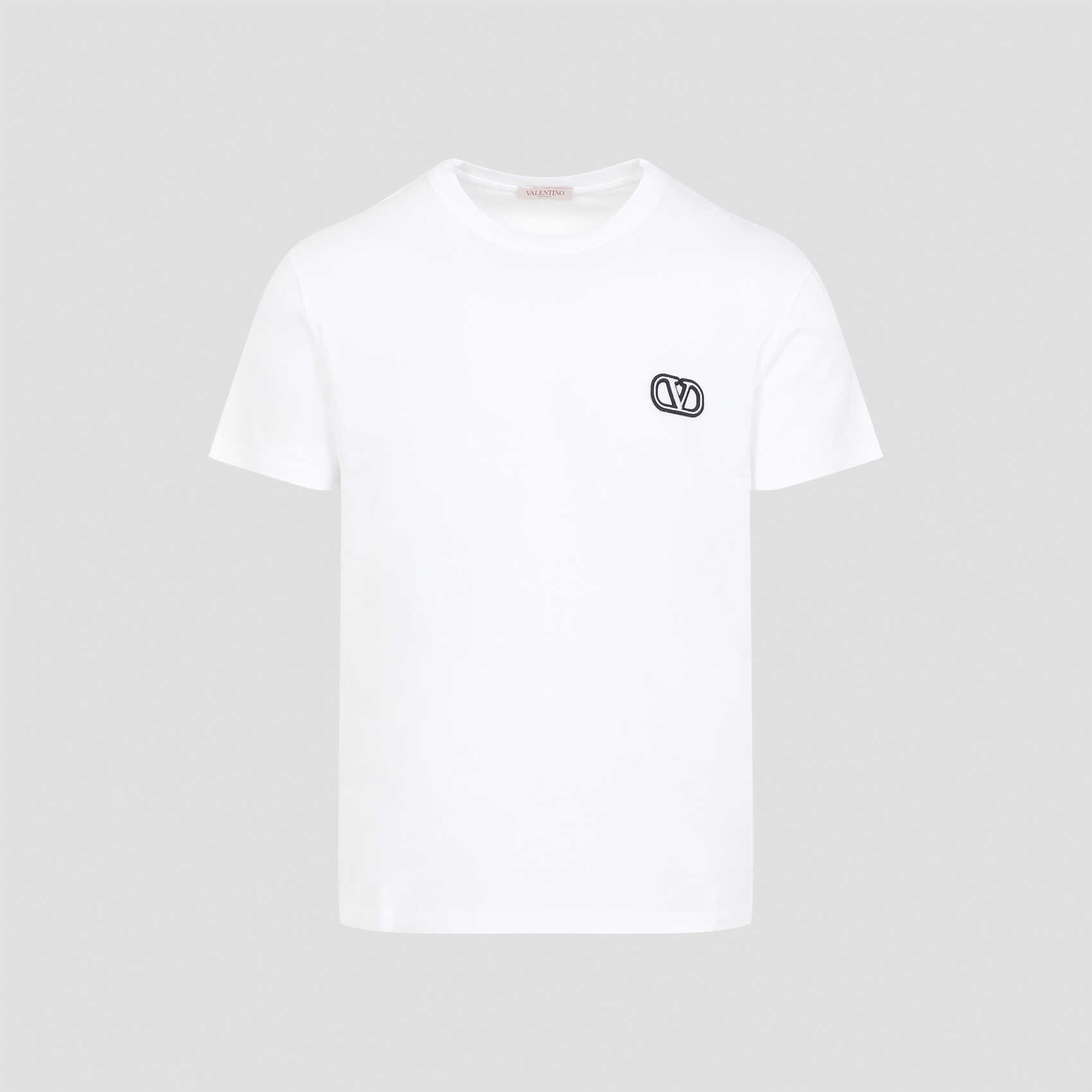 Elevate your style with this classic White VALENTINO T-Shirt. Made from 100% Cotton, this shirt is perfect for a casual yet sophisticated look. The timeless design and high-quality material make it a must-have for any wardrobe. Get yours today and experience luxury and comfort in one piece.